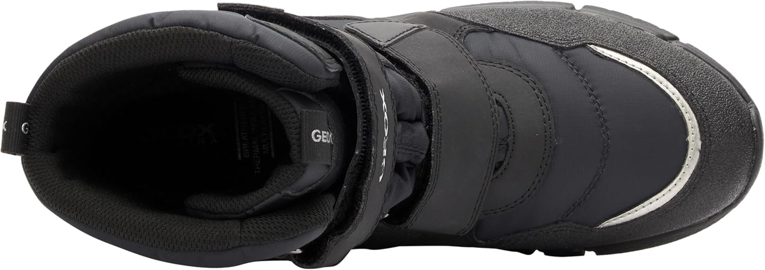 PRODUKTBESCHREIBUNGEN Der Jungenkurzstiefel Flexyper ABX aus Nylon und Lederimitat überzeugt mit seinen warmen und wasserdichten Eigenschaften. Einfach und schnell anzuziehen, leicht und flexibel und damit ideal für im Freien verbrachte Wintertage. - Die patentierten Geox-Systeme garantieren die Atmungsaktivität der Sohle und sorgen für Wohlbefinden des Fusses. - Die Amphibiox-Technologie sorgt für einen wasserdichten Oberschuh, um bei jedem Wetterverhältnis besten Schutz zu garantieren. - Schuh mit optimaler thermischer Isolierung. - Ein Schuh mit optimaler Stossdämpfung, die vor Stössen und Schlägen schützt. - Optimale Flexibilität - Leichter Schuh für mehr Bewegungsfreiheit. - Leichter Einstieg für einmaligen Tragekomfort. - Schuh mit abriebfester Sohle. - Schneller Einstieg dank Klettverschluss. - Warmes Innenfutter. - Herausnehmbare Innensohle.