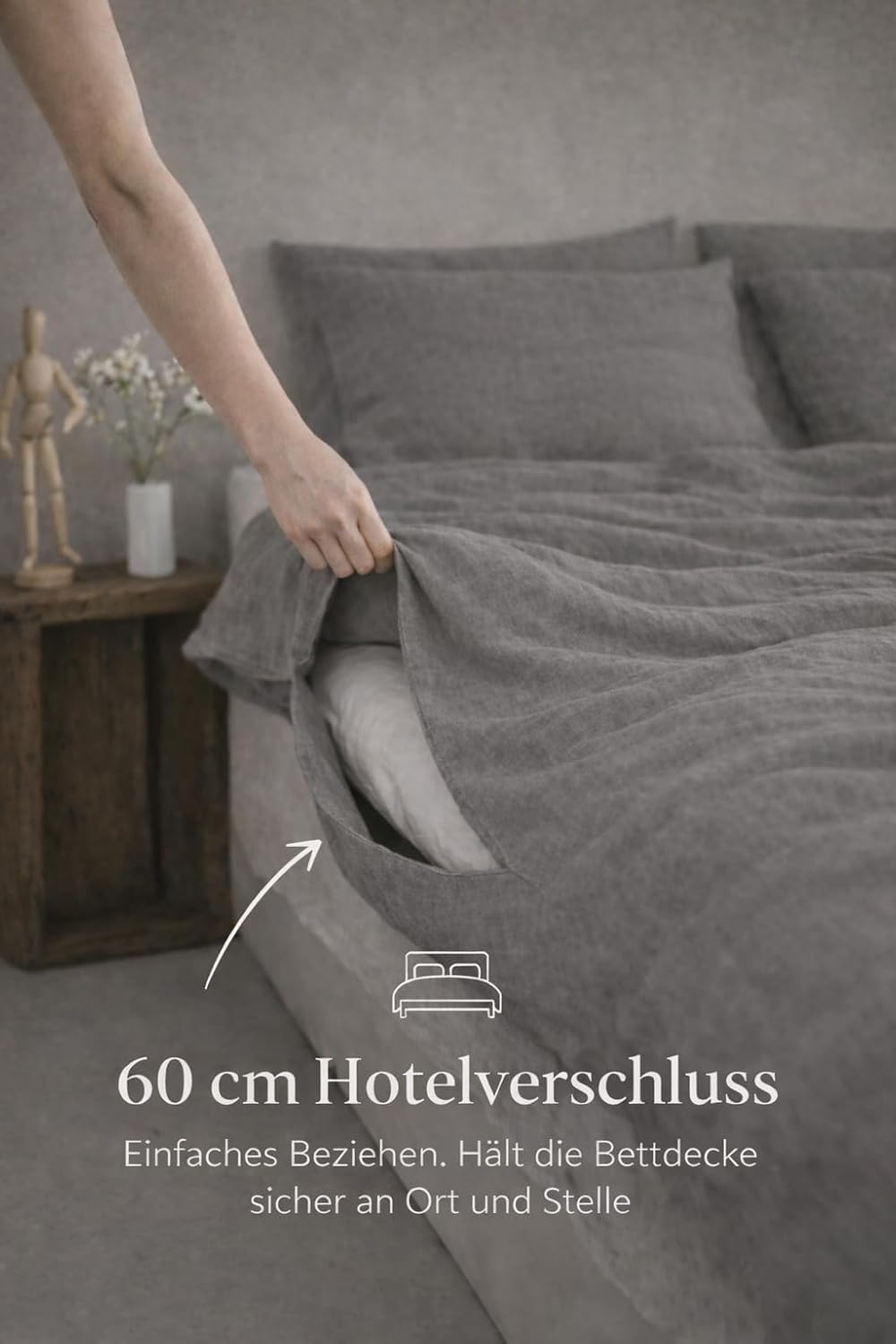 - Ger3as Leinen-Bettwäsche-Set, 100 % Naturleinen, Stonewashed, Naturfaser-Leinen, mit Hotelverschluss (Grau, 80 x 80 cm)