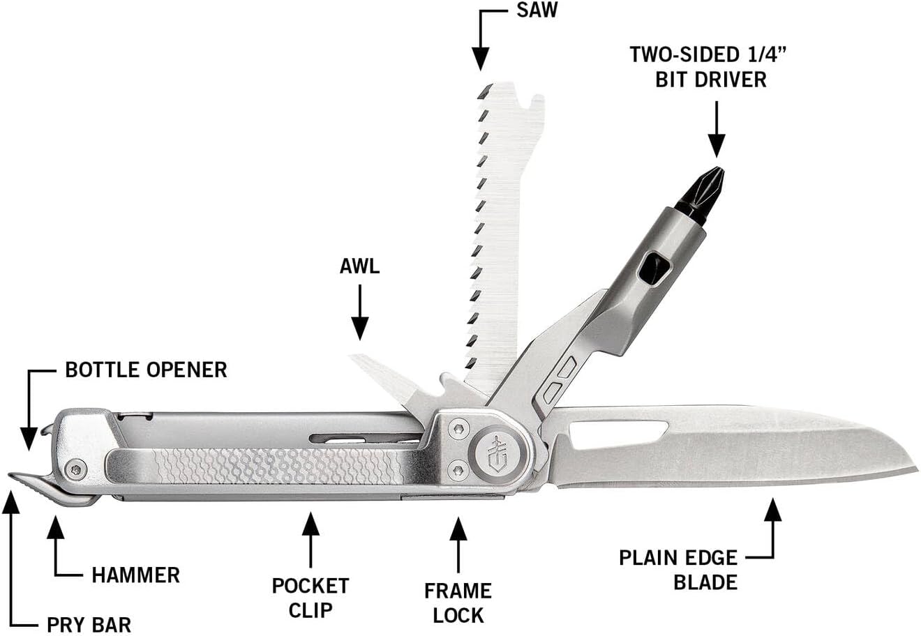 - Lieferumfang: 1 x Gerber ArmBar Trade, Länge geöffnet: 16,5 cm, Klingenlänge: 6,3 cm, Gewicht: 97 g, Material: Edelstahl/Aluminium, Farbe: Silber, 1064416
