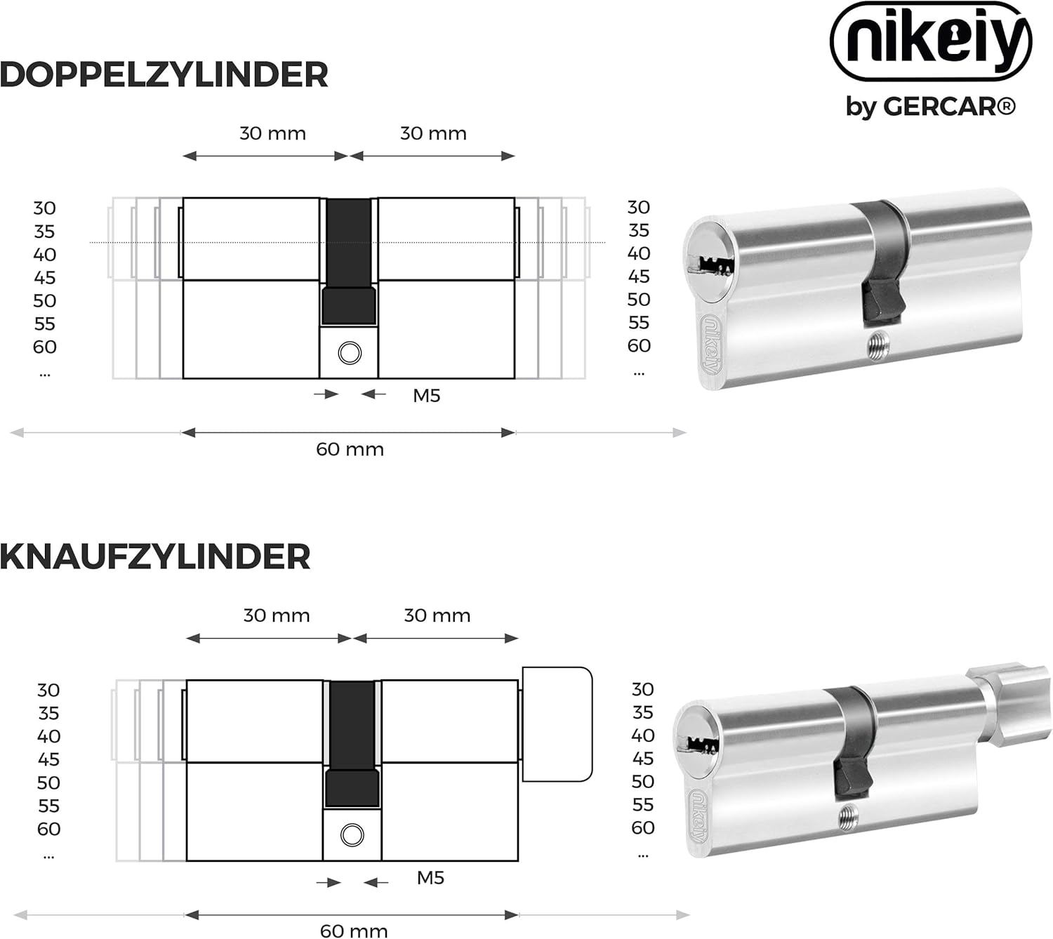- 🔒 SICHERHEITSKLASSE 2 EN 1303:2007+AC:2008: Geniessen Sie mehr Sicherheit ohne kostspielige Nachrüstung von teuren Sicherheitsvorrichtungen. Mit unseren Profilzylinder von GERCAR sind Sie auf der sicheren Seite. Erhältlich als Doppelzylinder oder