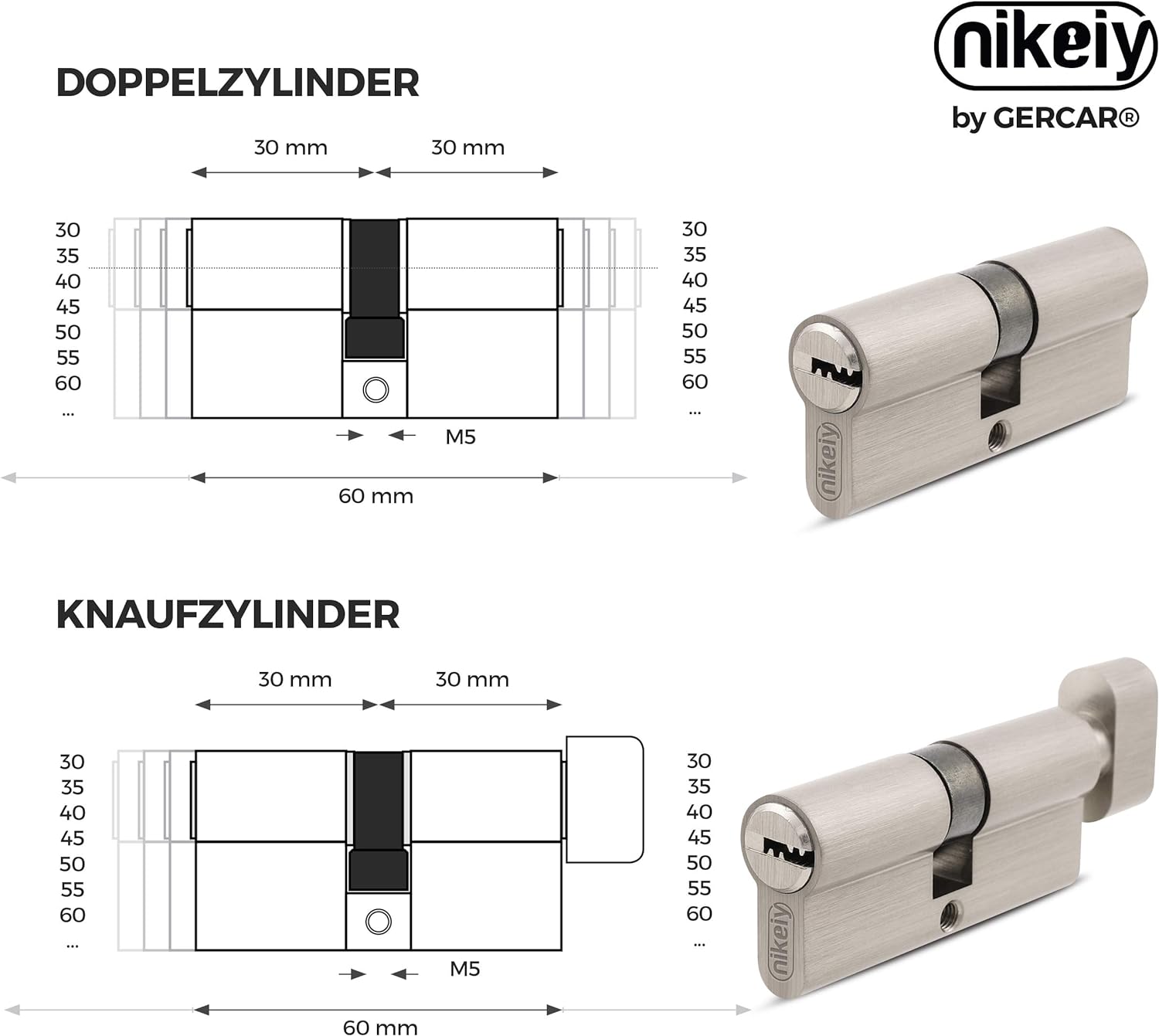- 🔒 HOCHWERTIGE SCHWERE AUSFÜHRUNG - Matt Vernickelt. Geniessen Sie mehr Sicherheit ohne kostspielige Nachrüstung von teuren Sicherheitsvorrichtungen. Mit unseren Profilzylinder von GERCAR sind Sie auf der sicheren Seite. Erhältlich als