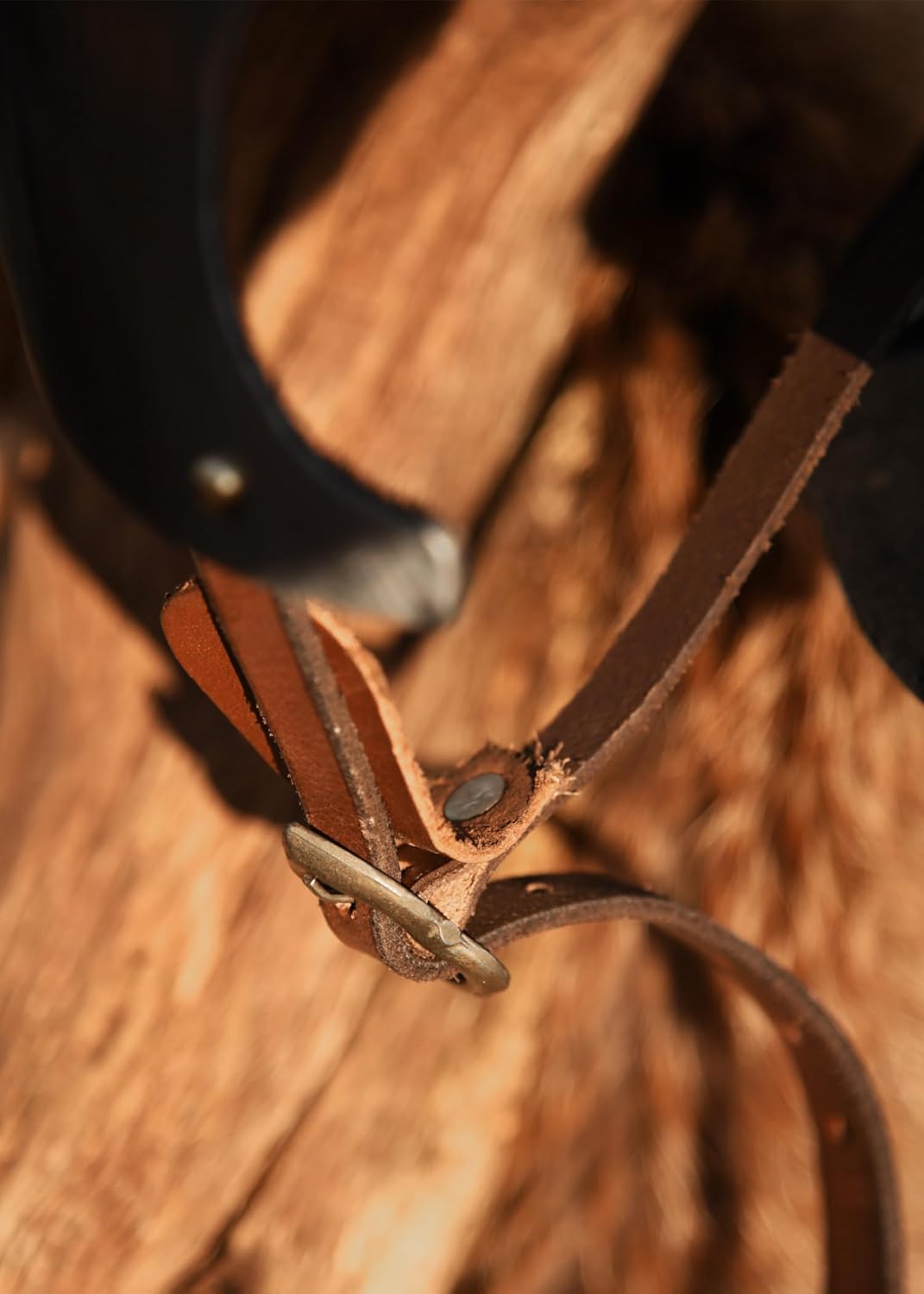- Hutgrösse bis zu 61 cm geeignet. - Langer Innenabstand (Hinterkopf-Stirn): ca. 21,5 cm - Kurzer Innenabstand (Ohr-Ohr): ca. 17,5 cm - Material: 1,6 mm Stahl, Leder und Messing - Gewicht: ca. 2,9 kg