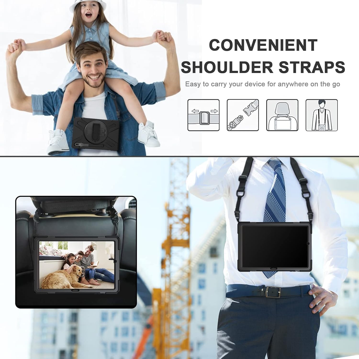 - [Abnehmbarer und verstellbarer Schultergurt]: Samsung Galayxy Tab S7+ 12.4" hülle Einfach zu hängen Sie das Tablet mit einem Schultergurt, bequem für Outdoor, Reisen und Familie.