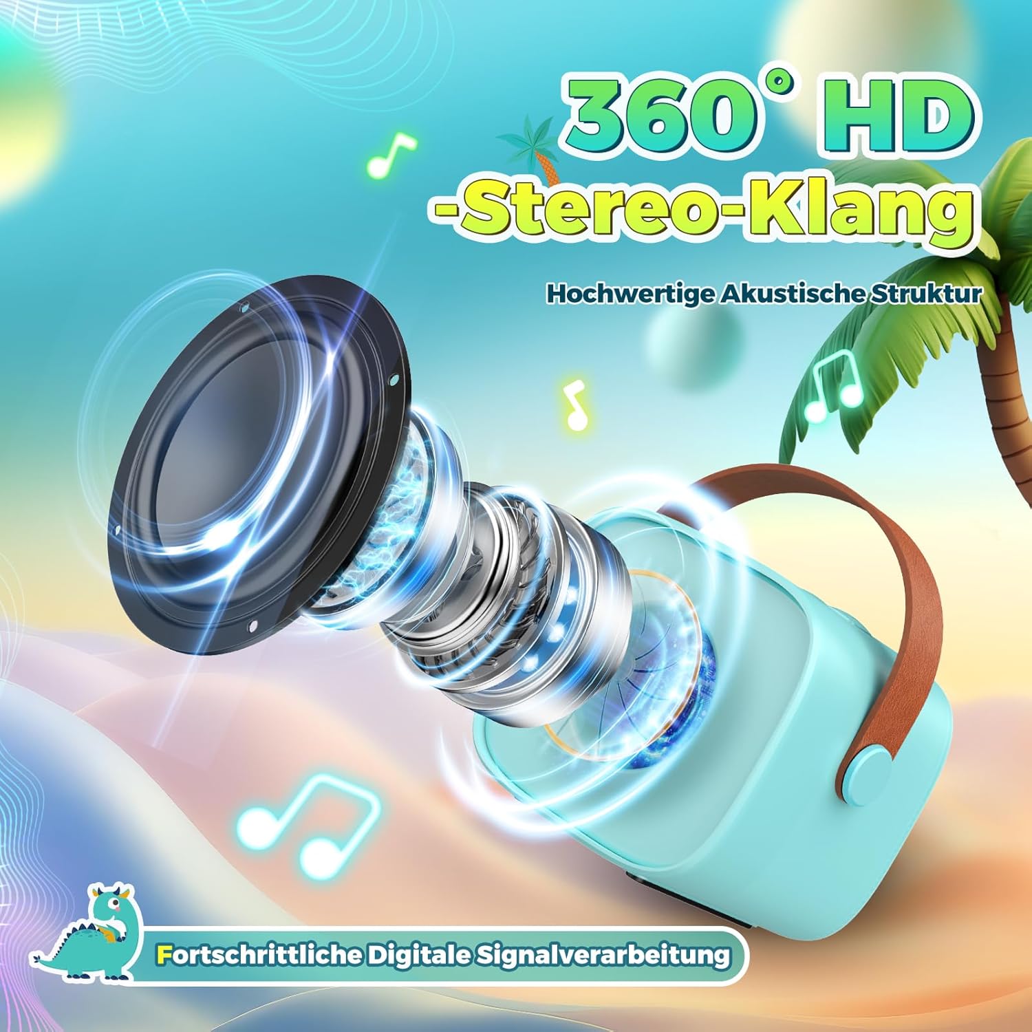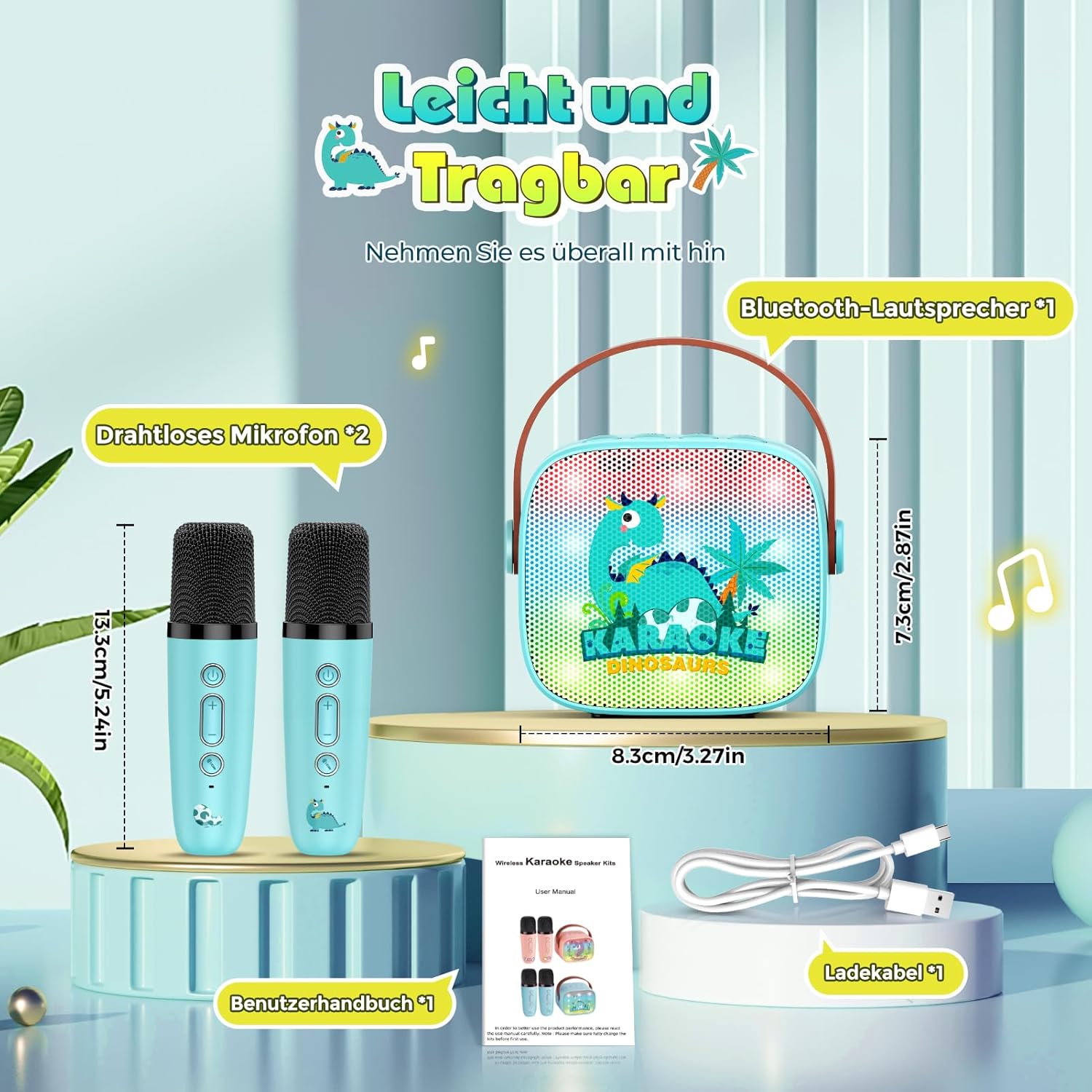 - 【Ideales Geschenk für Kinder】Eine schöne Verpackung und ein hübsches Dino-Design sind das perfekte Geschenk für den Kindergeburtstag, Weihnachten oder jede andere Feier! Mit diesem Bluetooth-Karaoke können Sie die Musik mit Ihren Kindern, Ihrer