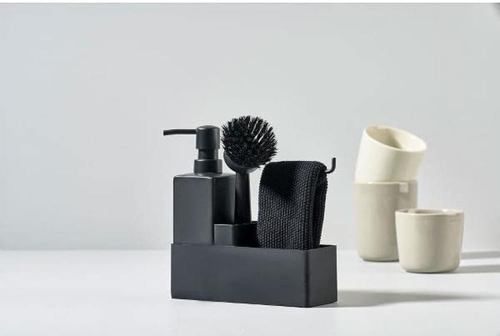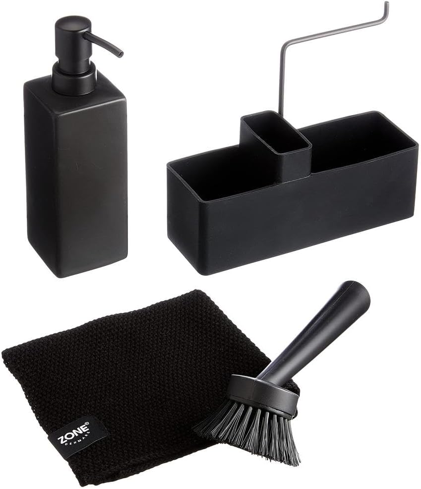 - Das beliebte All-in-One Spülset von Zone Denmark mit nützlichen Spülutensilien wie Seifenspender/Spülmittelspender, Spülbürste und Spültuch.