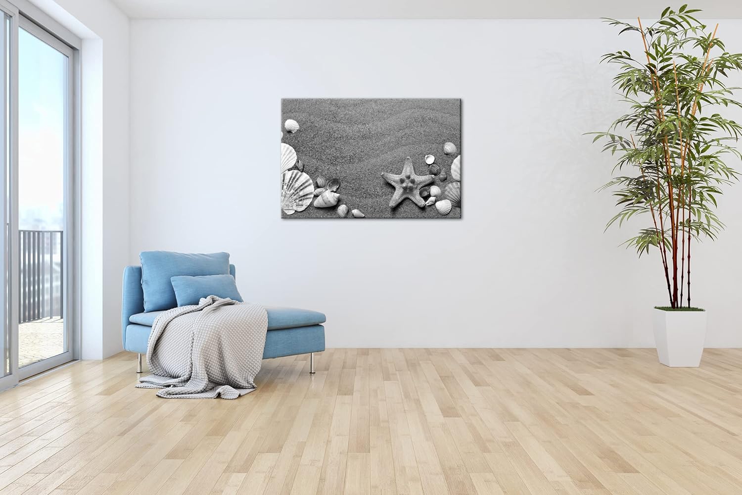 deyoli Gestrandete Muscheln zwischen feinem Sandstrand Format: 120x80 als Leinwand, Effekt: Schwarz&