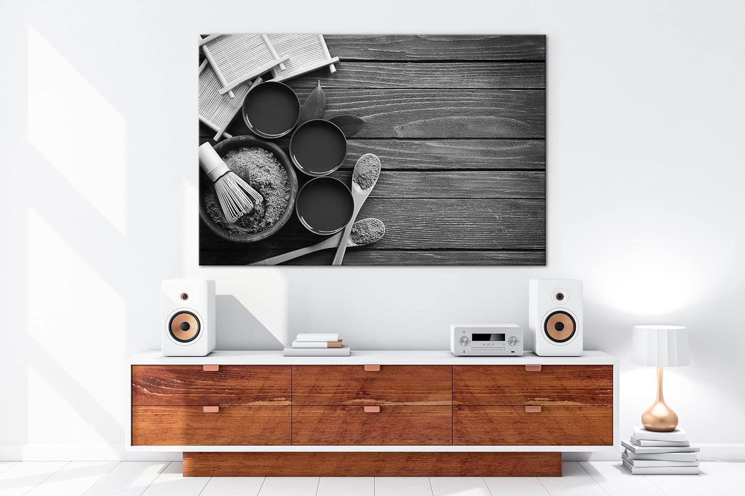 deyoli gesunder Matcha-Tee Effekt: Schwarz&Weiss,Format: 80x60 als Leinwandbild, Motiv fertig gerahm
