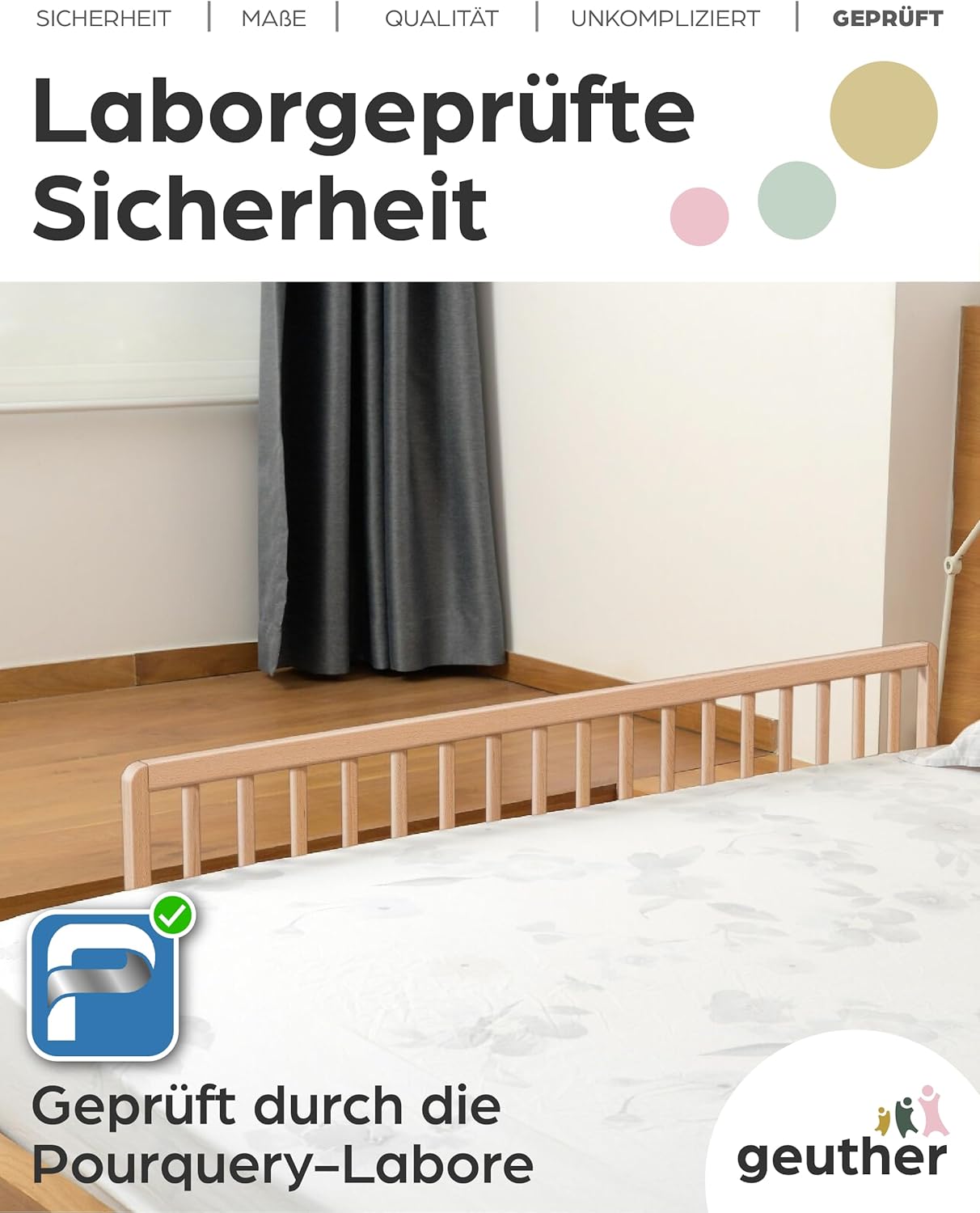 - Geuther Qualitätsprodukt: Die Absturzsicherung ist geprüft von den Pourquery-Laboratorien, besteht aus massivem Buchenholz und bietet daher besonders hohe Nachhaltigkeit und Langlebigkeit.