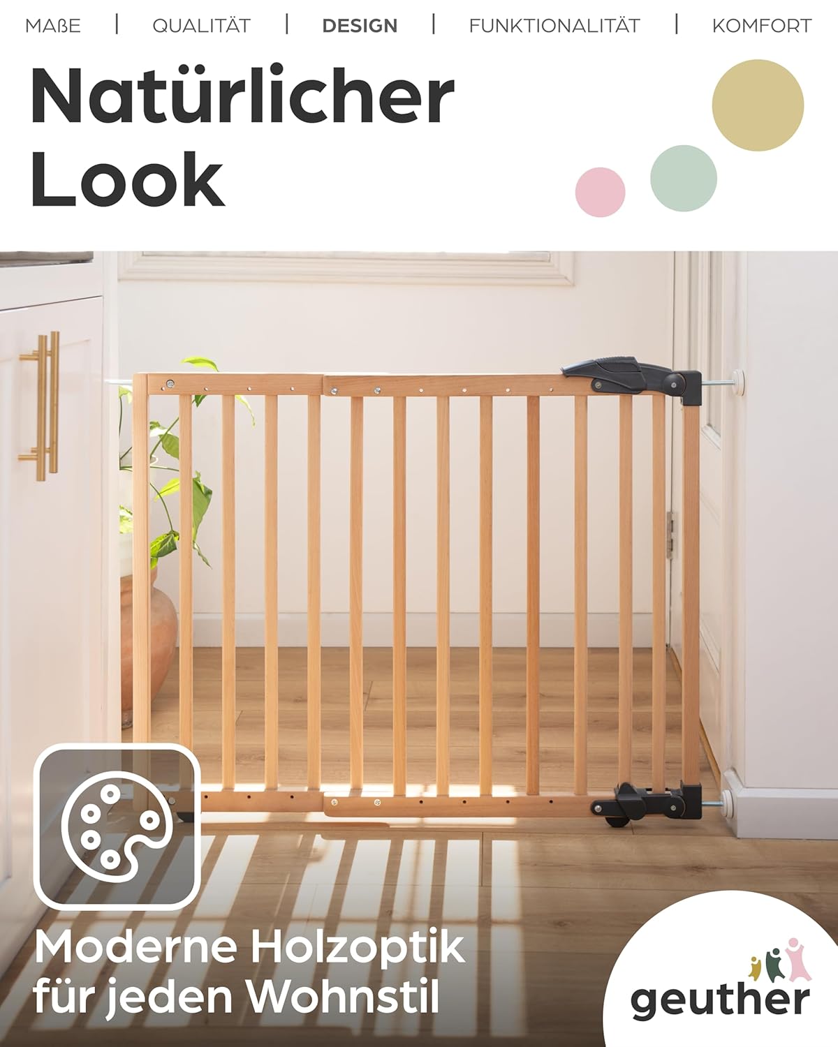 - Geuther Qualitätsprodukt: Das Babygitter besteht aus massivem Buchenholz und bieten daher besonders hohe Nachhaltigkeit und Langlebigkeit. Die eingesetzten Farben & Lacke bestehen auf Wasserbasis.