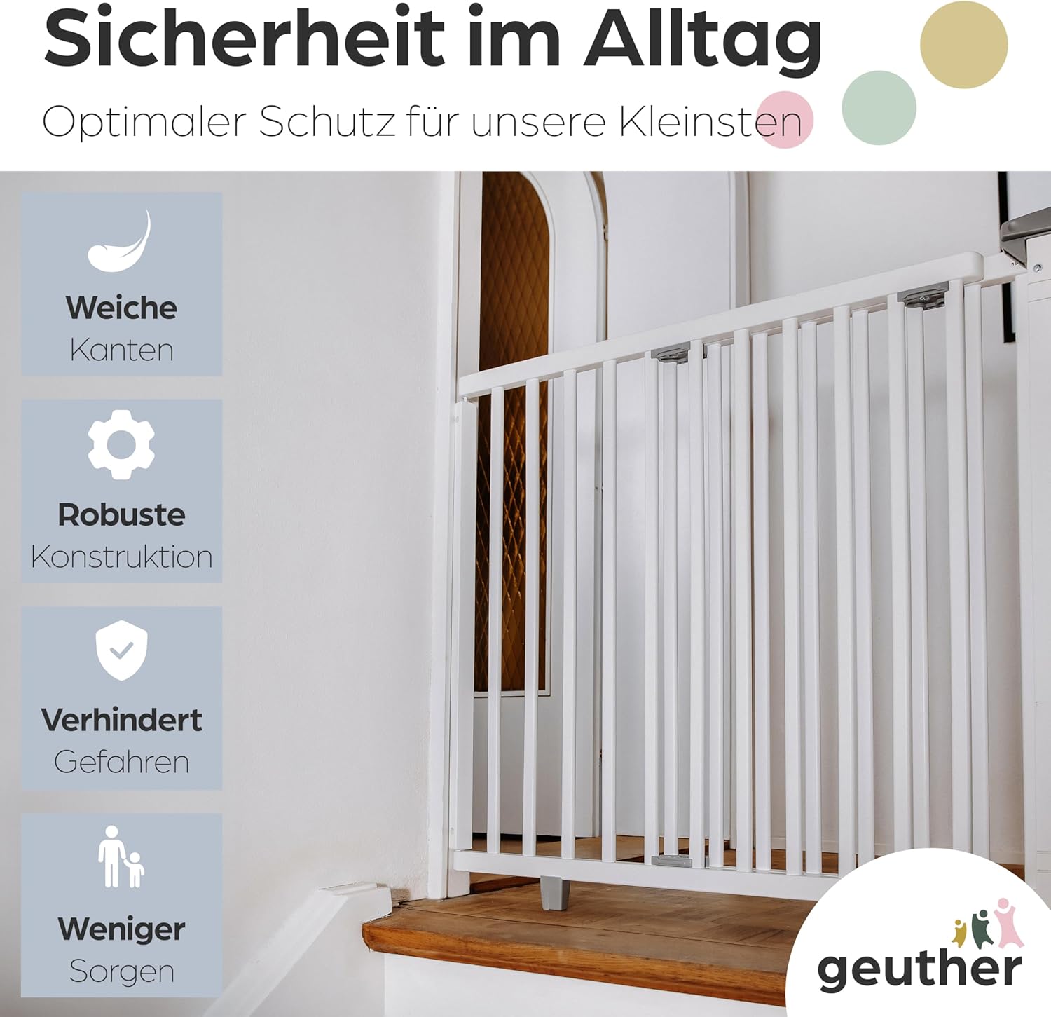 - Geuther Qualitätsprodukt: Das Babygitter besteht aus massivem Buchenholz und bieten daher besonders hohe Nachhaltigkeit und Langlebigkeit. Die eingesetzten Farben & Lacke bestehen auf Wasserbasis.
