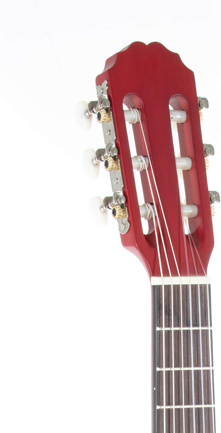 - Mit einem Griffbrett und Steg aus Pakkaholz liegt die Gitarre gut in der Hand und unterstützt die kleinen Finger beim Erkunden von Melodien. Die Neusilber-Bünde erleichtern das Greifen der Töne, und die verchromten Mechaniken halten die Stimmung