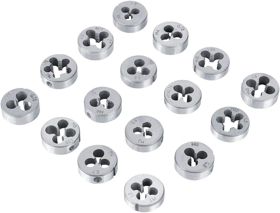 • 【Präzisionsgewinde】: Der kombinierte Gewindebohrer- und Matrizensatz aus legiertem Stahl dient zum Schneiden von Gewinde: Der Gewindebohrer dient zum Verarbeiten von Innengewinden, während die Matrize für Aussengewinde verwendet wird, ideal zum