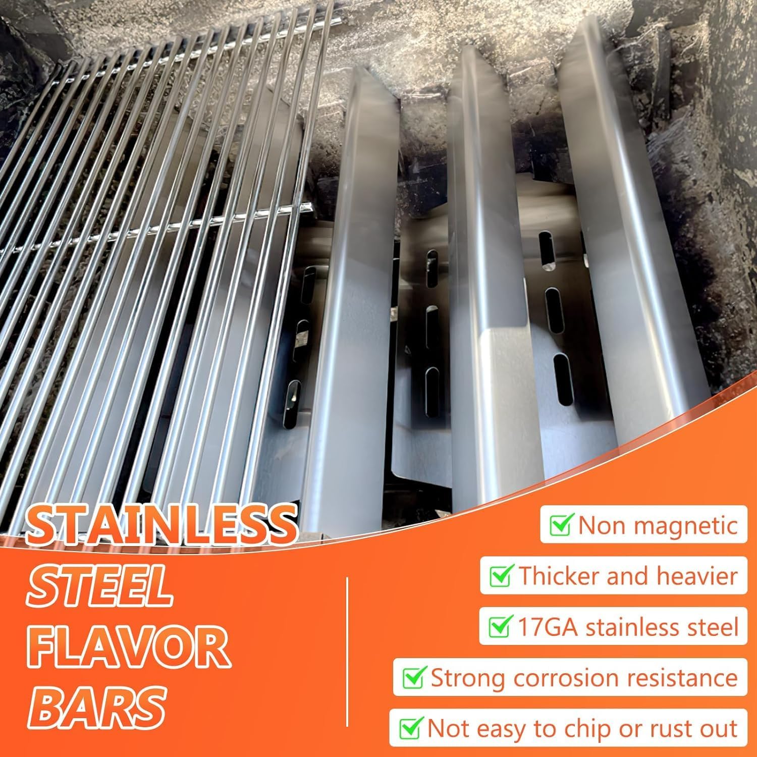 - 【Gleichmässige Hitze】Verhindert, dass Lebensmittel direkt Flammen ausgesetzt werden, schützt Ihren Brenner gut und erwärmt die Lebensmittel gleichmässiger. Edelstahl-Aromastäbe sorgen für einen köstlichen Grillgeschmack.