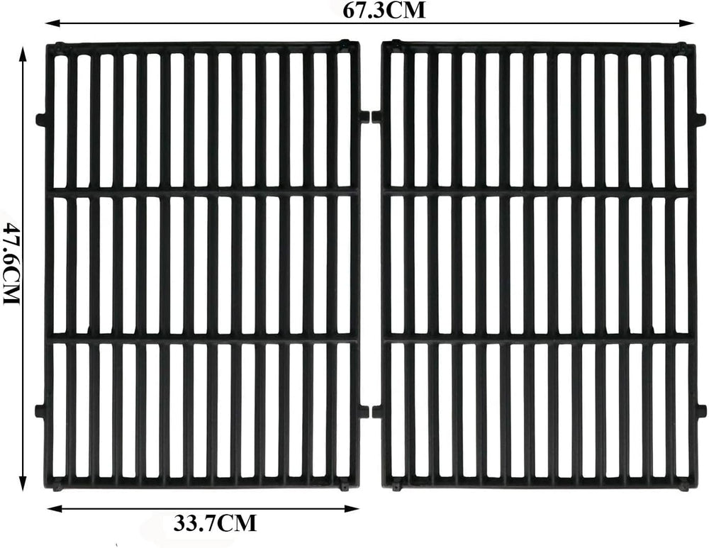 - 【ABMESSUNG & VERPACKUNG】 47,6 x 33,7 cm für jeden Rost, 47,6 x 67,3 cm insgesamt. Kommt mit 2 Grillrosten aus Gusseisen. Bitte vergleichen Sie mit der GRÖSSE und dem MODELL Ihrer, bevor Sie bestellen.
