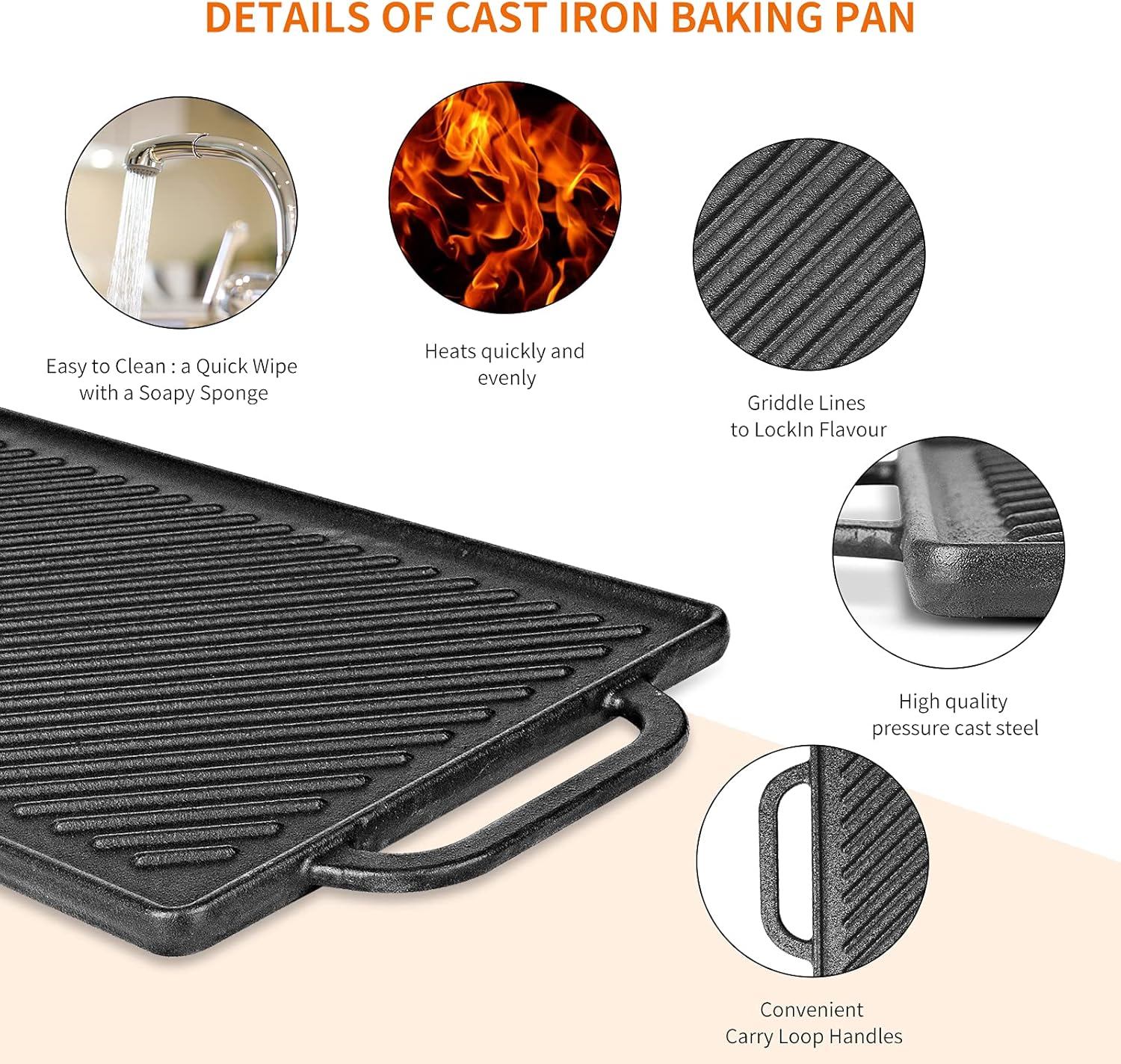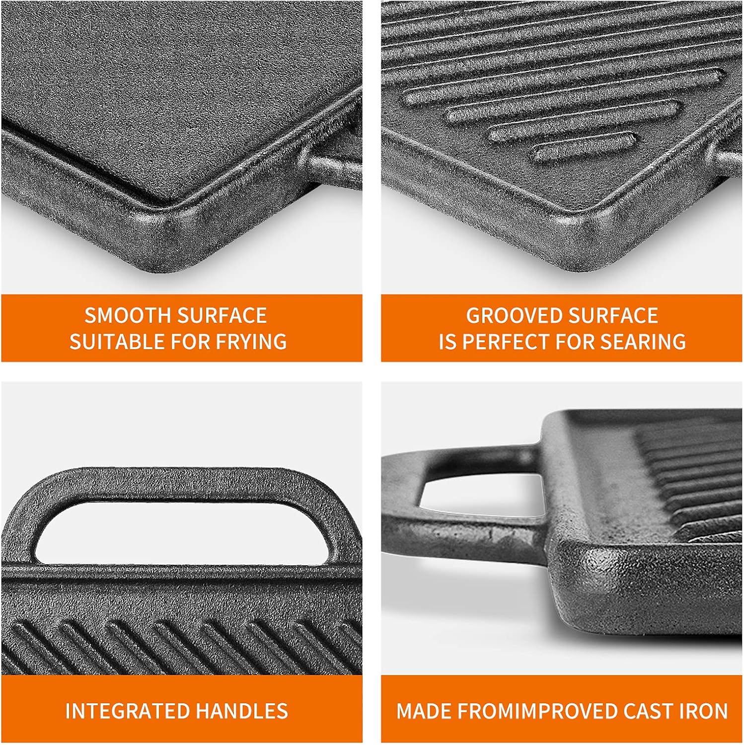 - 【Premium Gusseisen】Grösse: 33 X 21CM. Paket: 1 x Gusseisen Grillplaten. Besser als eine Standard-Edelstahl-Backform oder Silikon-Pizza-Pfanne, Gusseisen bietet eine bessere Wärmeverteilung und knackere, köstliche Ergebnisse.