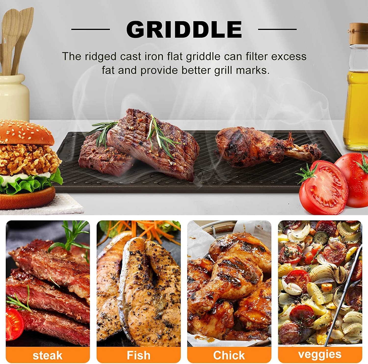 - Hochwertig & Gesund: Im Vergleich zu gewöhnlichen sogenannten antihaftbeschichteten Grillplatten beseitigt das einzigartige beschichtungsfreie Design der Grillplatte aus Gusseisen grundsätzlich die Schäden durch chemische Beschichtungen und