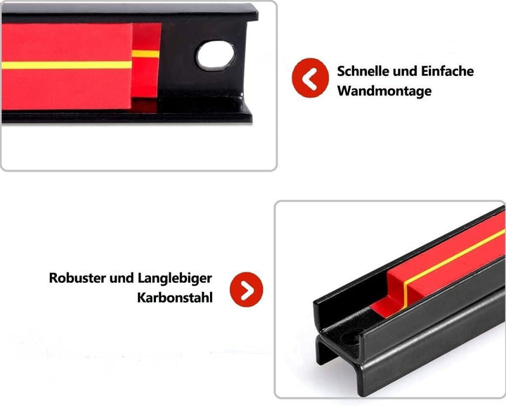 - 🛠️ Starker Magnet - Aus haltbarem Karbonstahl und ferromagnetischer Keramik gemacht, weist diese Magnetschiene einen extra starken Magnet während ein kleines Gewicht auf. Jede Magnetleiste hat somit eine Tragfähigkeit von bis zu 10 kg.
