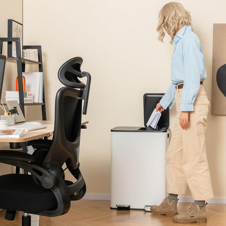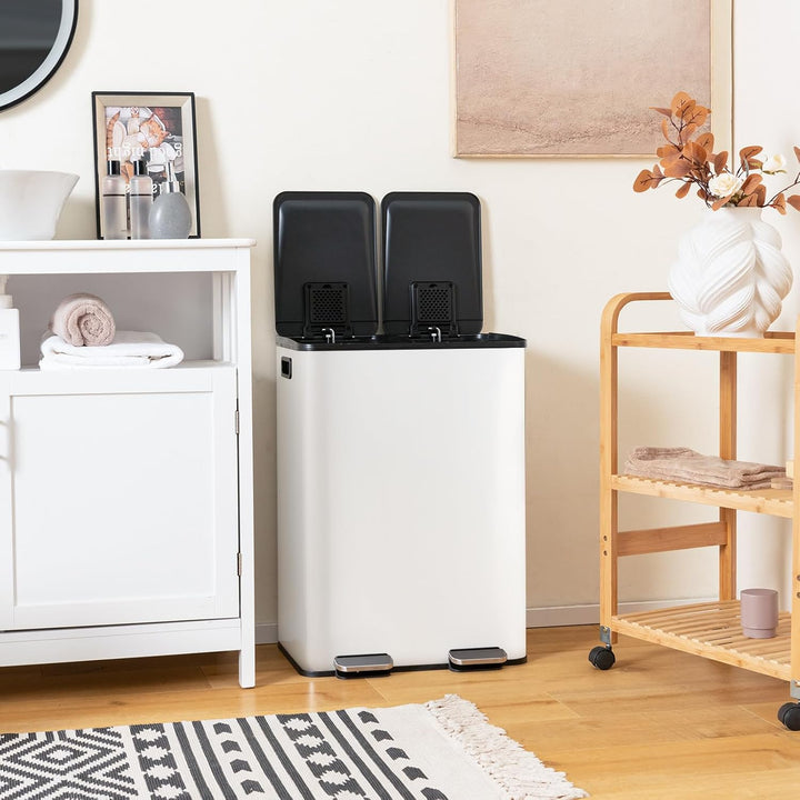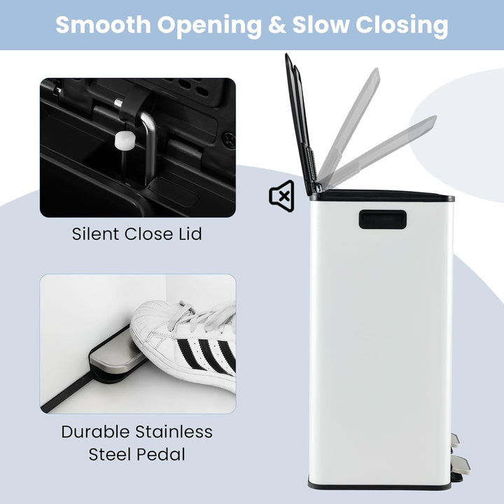 - ✨ Sanfter Verschluss & Offenbleiben - Der Deckel des Doppelmülleimers lässt sich mit einem Fusstritt öffnen, ohne dass Sie ihn mit der Hand berühren müssen. Mit einem hydraulischen Hebel ausgestattet schliesst der Deckel beim Entfernen des Fusses