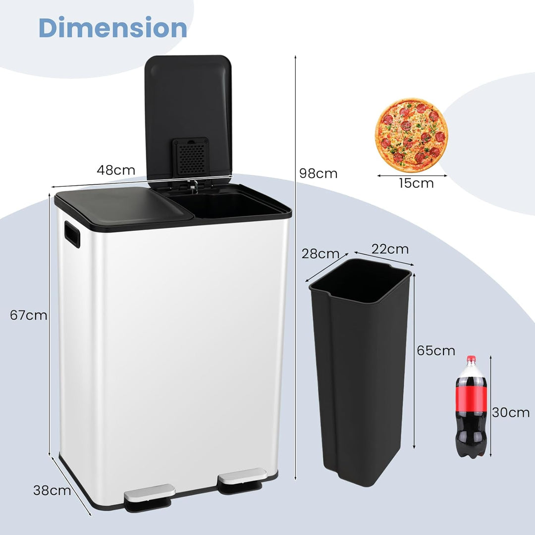 - ✨ Einfache Mülltrennung mit 2 Fächern - Unser Mülleimer ist mit 2 herausnehmbaren 30 L Inneneimern ausgestattet, die perfekt zur sortierten Trennung von Küchenabfällen und recycelbaren Abfällen geeignet sind, dadurch bleiben Ihre Hüche sauber