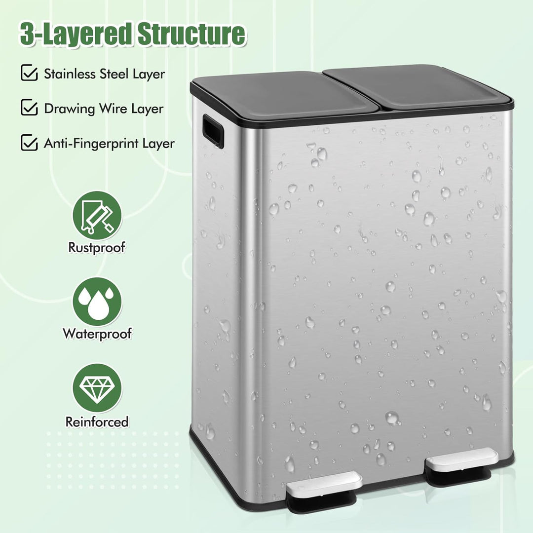- ✨ Einfache Mülltrennung mit 2 Fächern - Unser Mülleimer ist mit 2 herausnehmbaren 30 L Inneneimern ausgestattet, die perfekt zur sortierten Trennung von Küchenabfällen und recycelbaren Abfällen geeignet sind, dadurch bleiben Ihre Hüche sauber