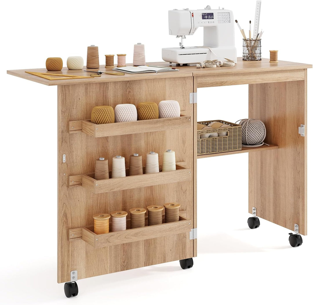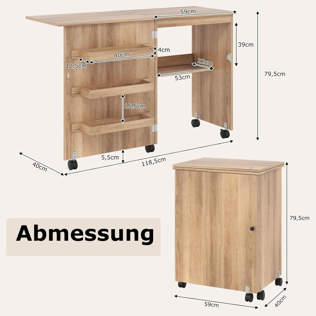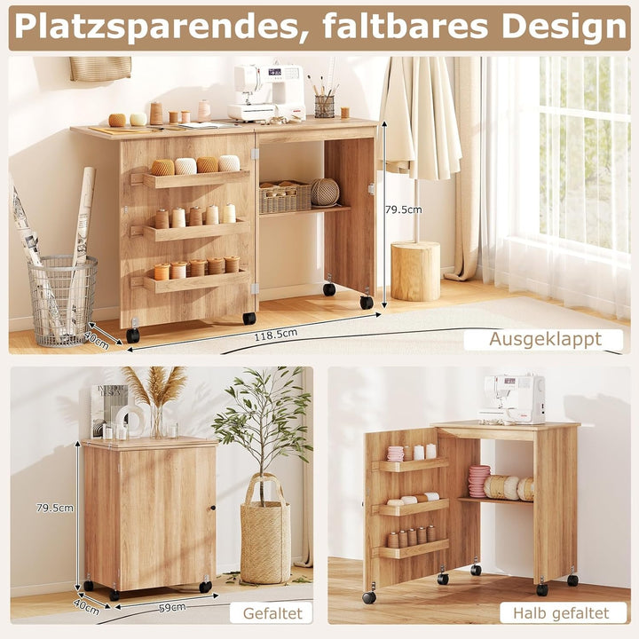 - 💖 Geräumiger Stauraum - Dieser Nähschrank entfaltet sich mit einer grossen Tischplatte von 118,5x40 cm, die ausreichend Platz für Näharbeiten bietet. Darüber hinaus bieten 4 offene Ablagen viel Platz für Nähwerkzeuge.