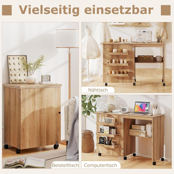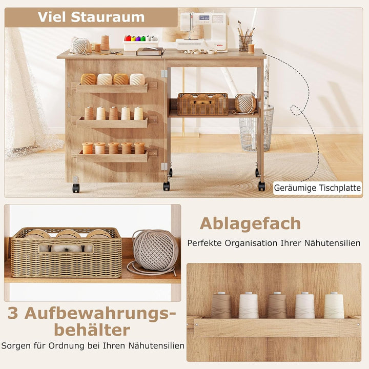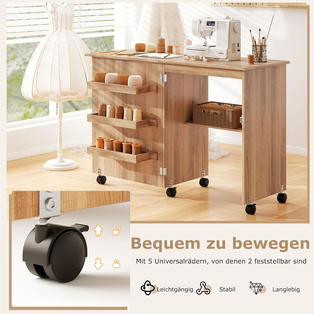 - 💖 Ausgestattet mit Rollen - Anders als andere Nähtische ist unser Nähmaschinentisch mit 5 flexiblen Rollen ausgestattet, die leicht zu bewegen sind. Zusätzlich ist der Nähtisch mit Festellbremsen ausgestattet und kann daher stabil stehen. Die