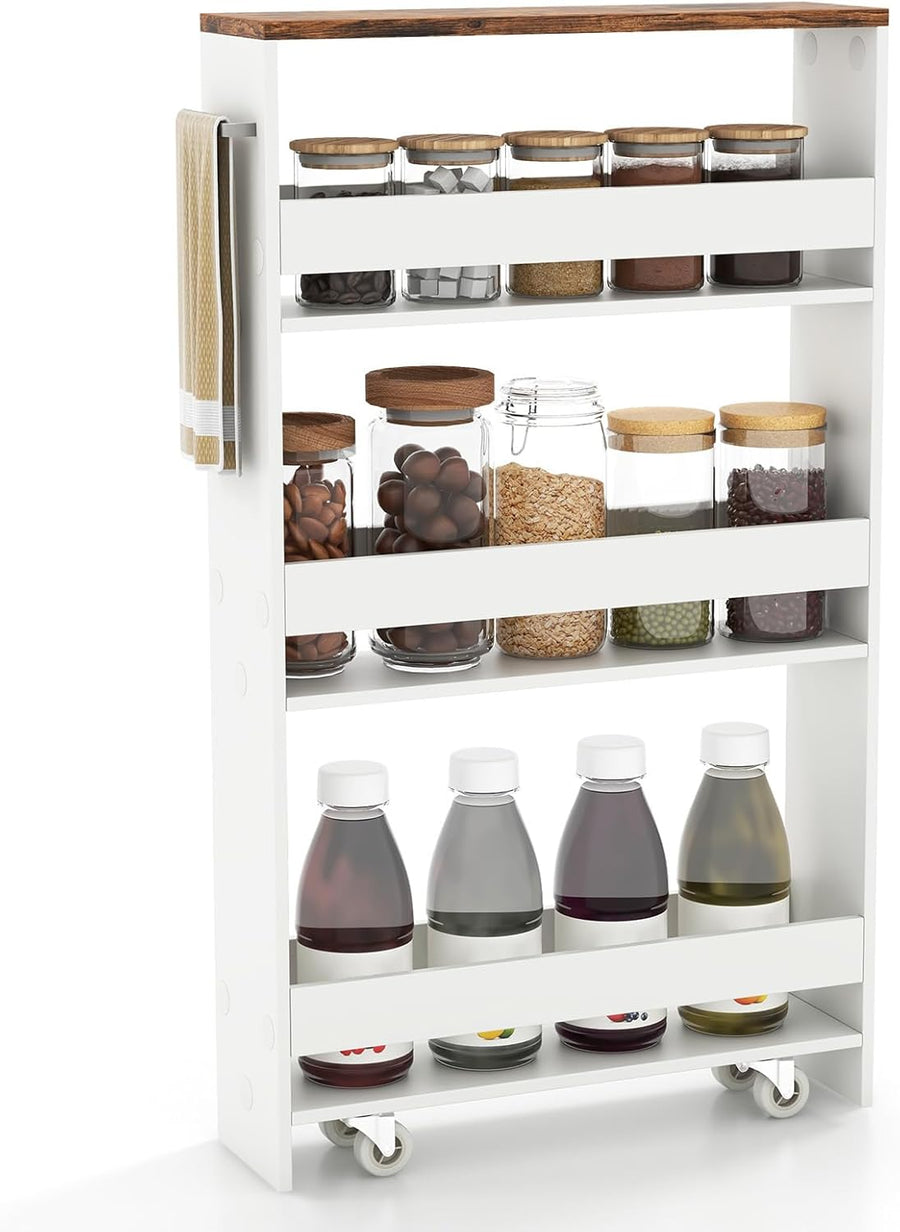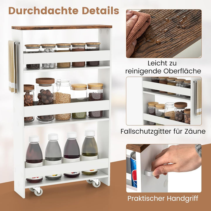 - 💖 Sanftes Gleiten - Ausgestattet mit 4 leichtläufigen PP-Rädern und einem leicht zu greifenden Griff ist dieser schmale Küchenwagen leicht in der Nische rein und raus zu rollen oder dort zu verschieben wo Sie wollen.