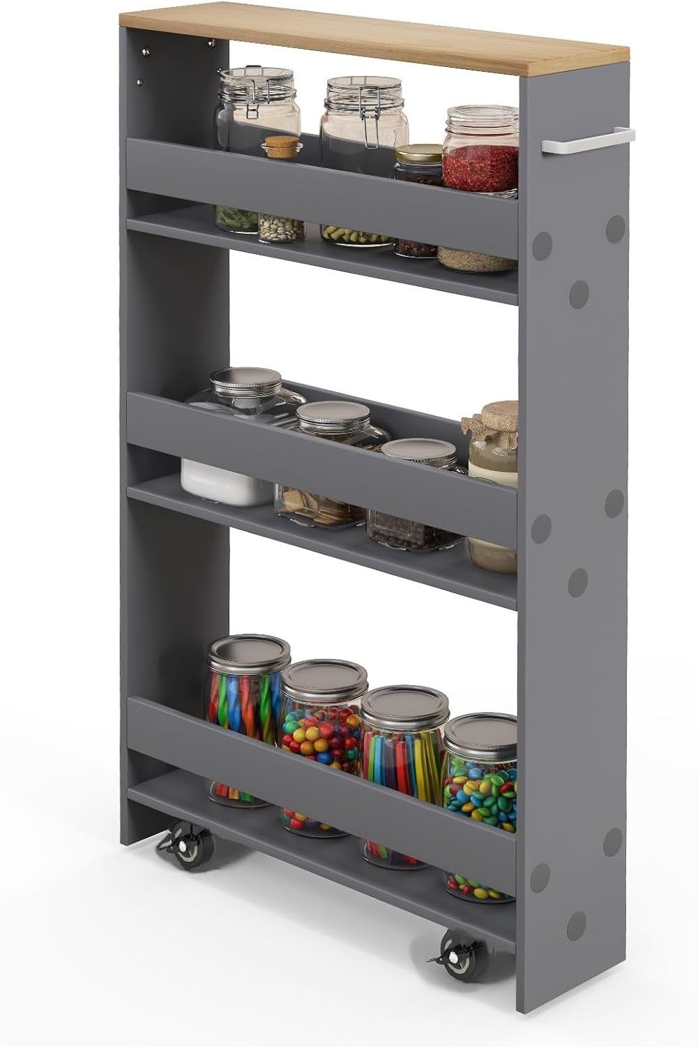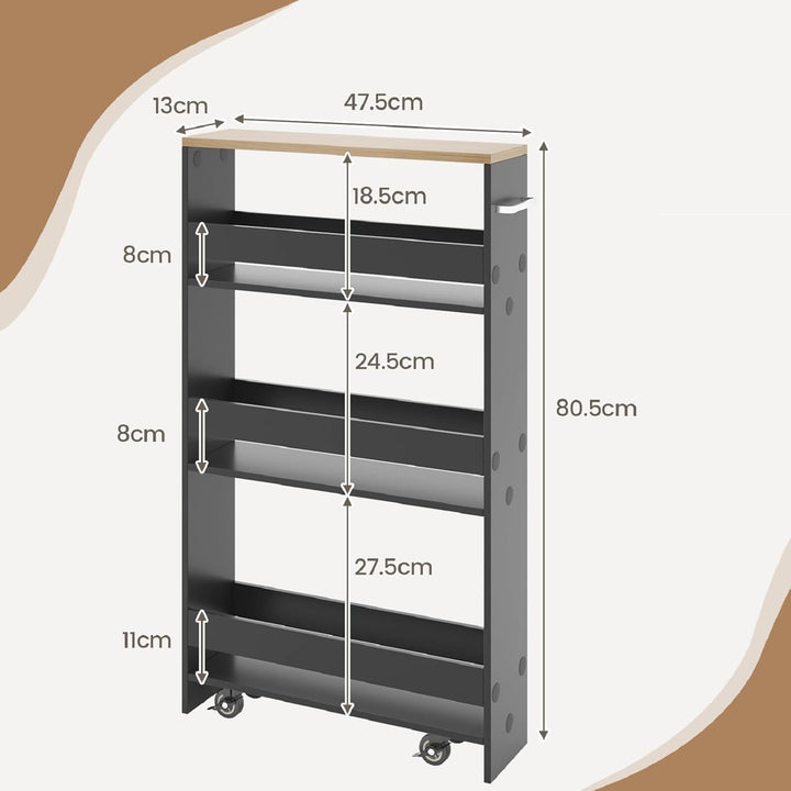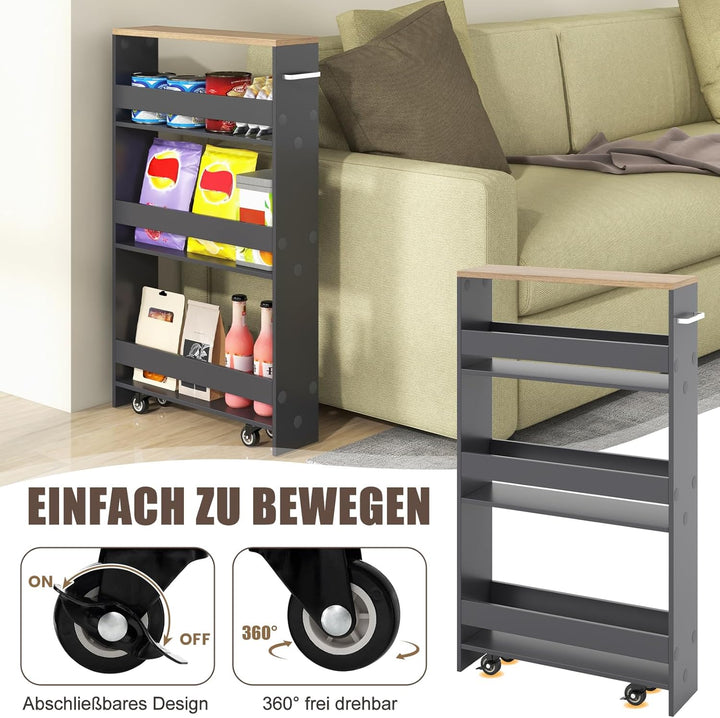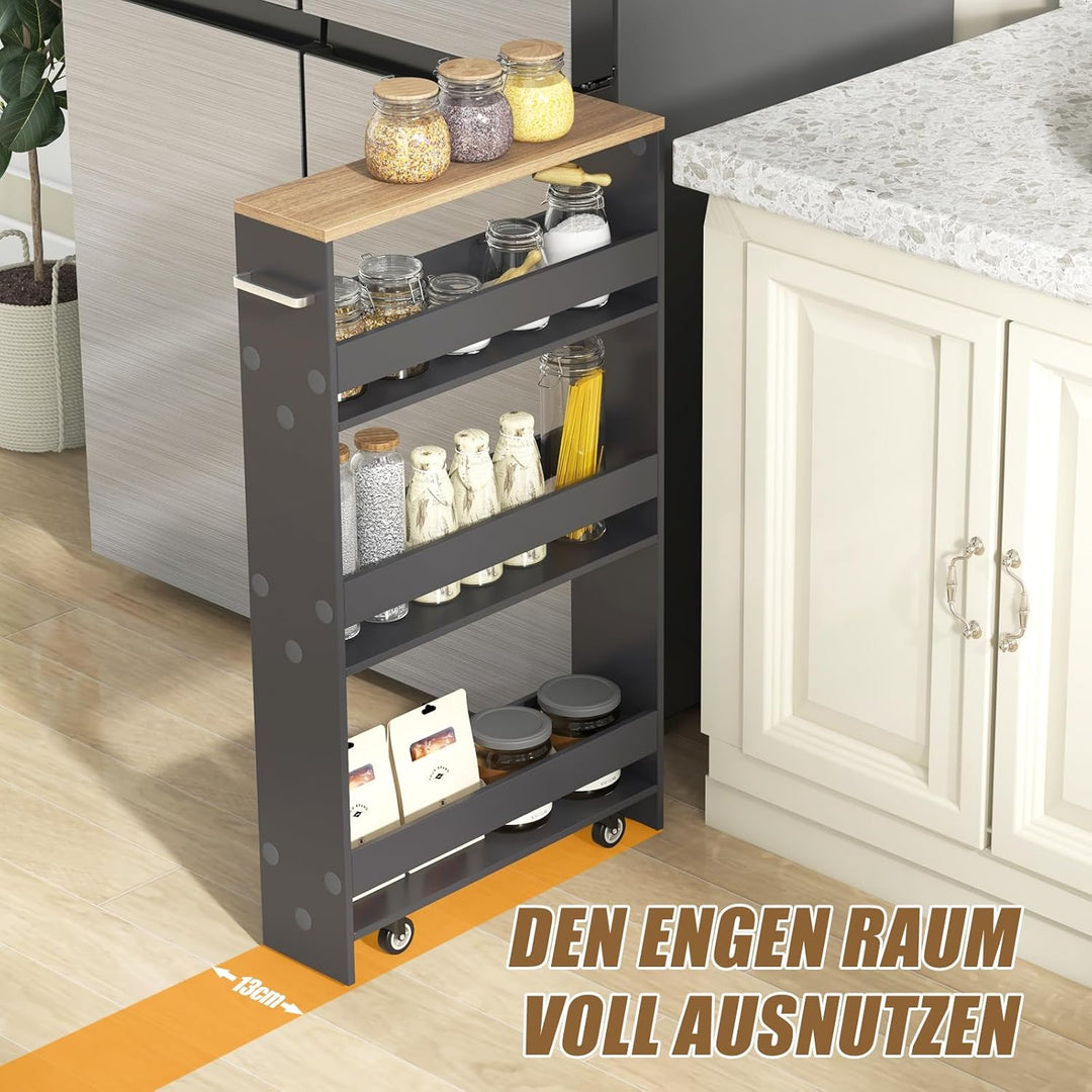 - 💖 Sanftes Gleiten - Mit 4 leichtlaufenden Universalrädern und einem einfach zu greifenden Griff ist dieser schmale Küchenwagen mühelos in der Nische zu bewegen. Die Räder sind zudem mit feststellbaren Bremsen ausgestattet, um den Wagen sicher an