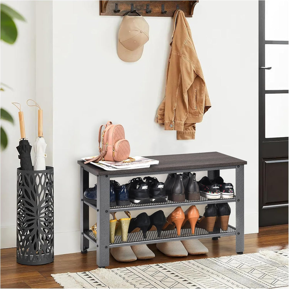 - 💝 Schuhregal und Sitzbank 2-in-1 Design - Dieses 3-stufige Schuhregal verfügt über 2 offene Regale, um Ihre Schuhe ordentlich zu organisieren und zu lagern, damit sie jederzeit leicht zugänglich sind. Die oberste Schicht dient zudem als Sitzbank,