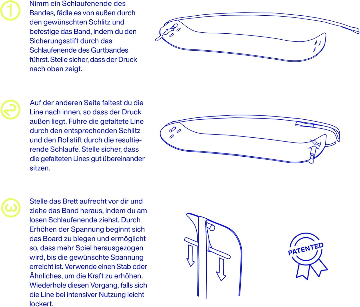 - KOMPLETT-SET & ERWEITERBAR: Inklusive 5cm TRAVELLine Slackline-Set (inkl. Lock & Roll Spannsystem) und Korg Pads. Erweiterung zur Nutzung mit 2 Slacklines möglich