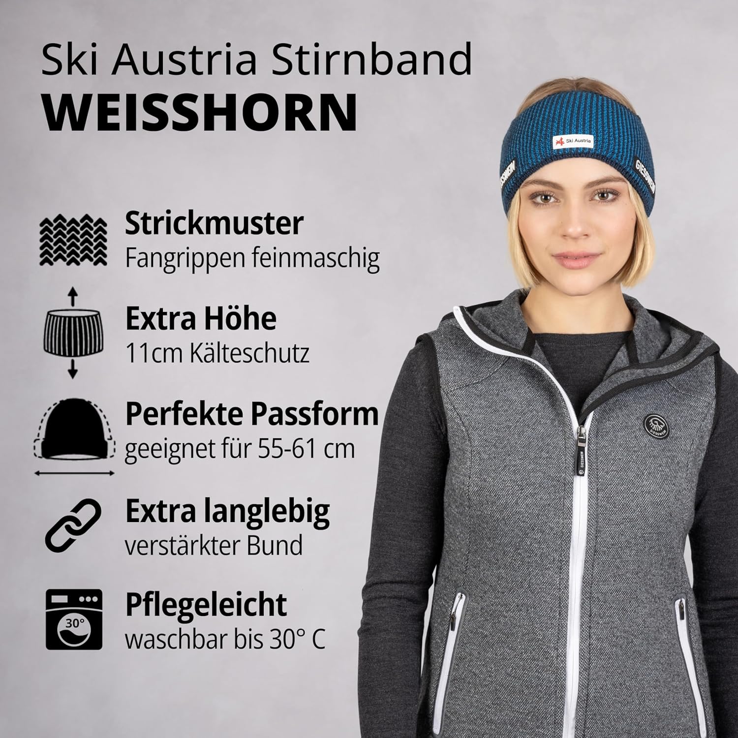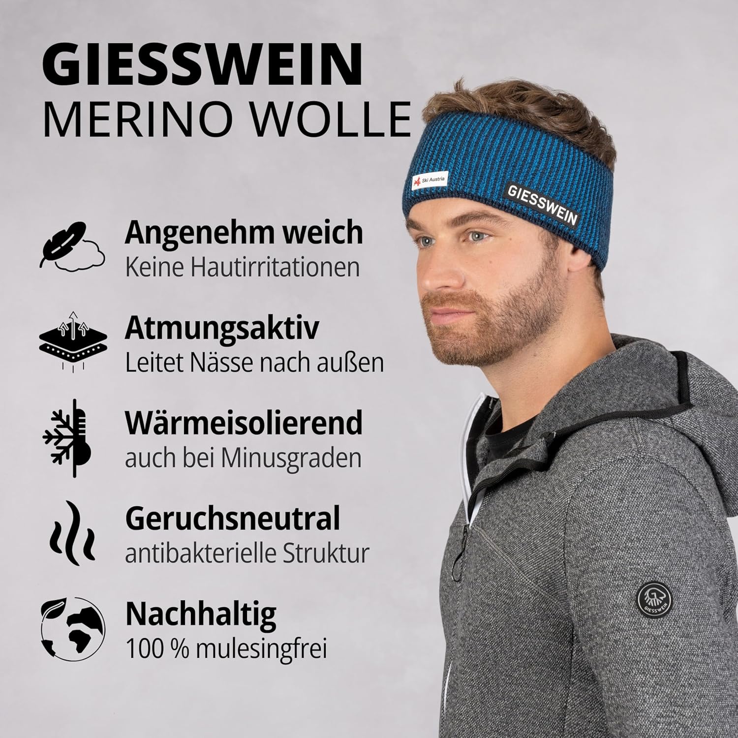 GIESSWEIN Ski Austria Headband Weisshorn - Merino Stirnband Damen Winter gefüttert, Fleece Stirnband