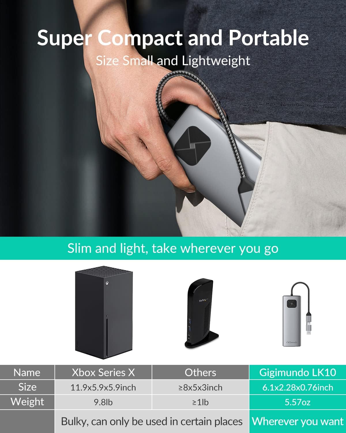 - ☛【Superkompakt und Tragbar】Dieses usb c docking station besteht aus einem Gehäuse aus Aluminiumlegierung und ist sowohl langlebig als auch strukturiert. Es ist kleiner als Ihr Apple 14pro und wiegt etwa 300 Gramm. Wechseln Sie ganz einfach