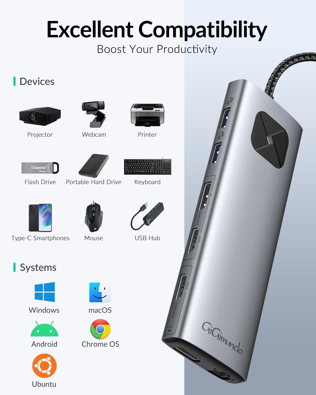 - ☛【Dual 4K@60Hz Display】Durch die Installation des DisplayLink-Treibers des US amerikanischen Technologieunternehmens: Synaptics, Die USB C Docking Station von GiGimundo Kann die Beschränkung des Einzelnen Externen 4Kp60 Bildschirms Neuer Apple