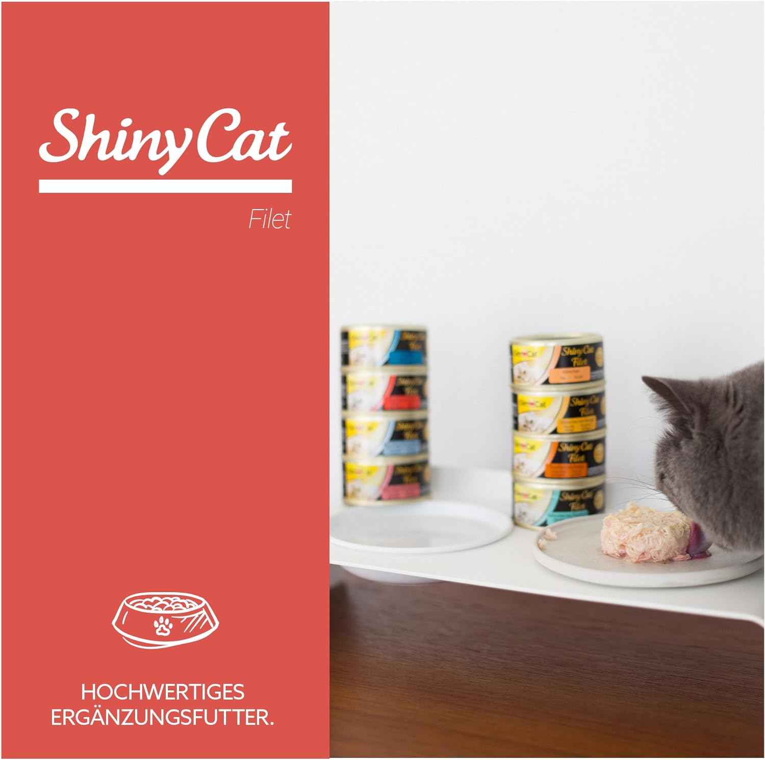 - LIEFERUMFANG: 24 Dosen (24 x 70g) GimCat ShinyCat Filet Katzennassfutter in der Geschmacksrichtung Thunfisch mit Lachs