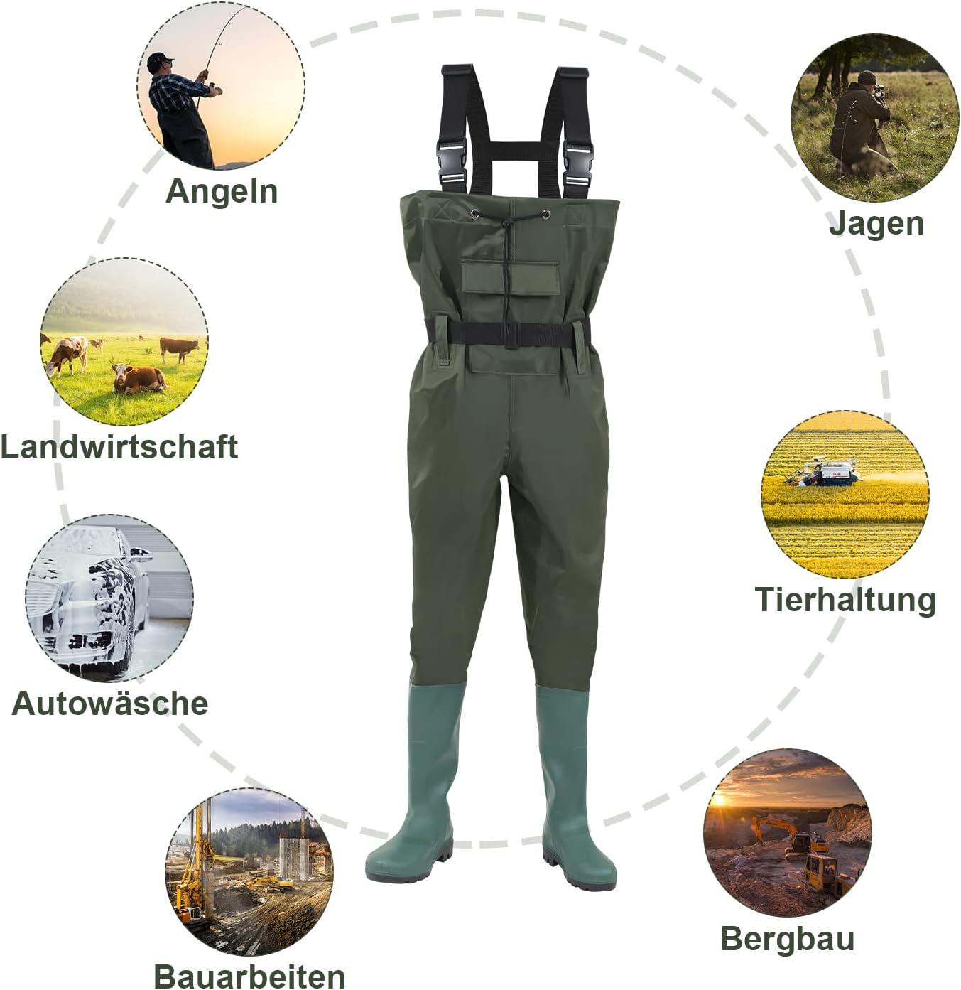 • 【Vielseitig verwendbar】Unsere Wathosen sind geeignet für: Angeln, Jagen, Landwirtschaft, Bergbau, Autowäsche, Teicharbeiten oder Gartenarbeit und jede Tätigkeit an nassen Orten.
