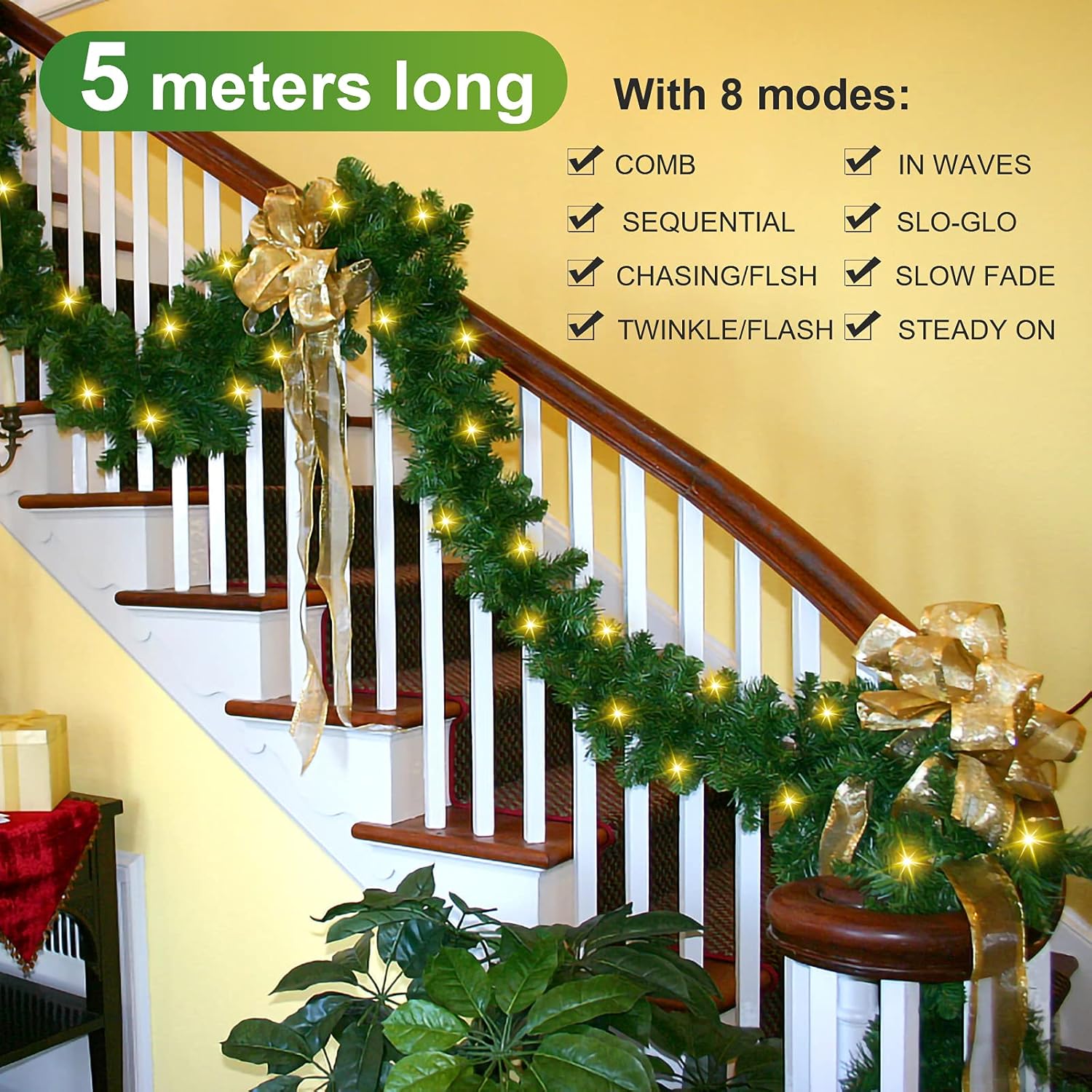 • Leicht zu dekorieren: Die flexible Struktur ermöglicht eine mühelose Dekoration. Wickeln Sie die Girlande um Treppengeländer, Türumrandungen, Fensterbretter oder jeden gewünschten Ort, um eine festliche Stimmung zu schaffen.