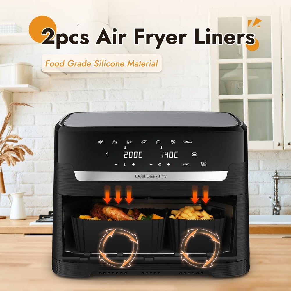 - 🍕Für DUAL BASKET AIR FRYER mit ca. 5.2L/3.1L - Nur kompatibel für Tefal EY9018 Dual Easy Fry 5,2/3,1 L. Die Silikoneinlagen für die Fritteuse wurden speziell für diese vier Modelle entwickelt