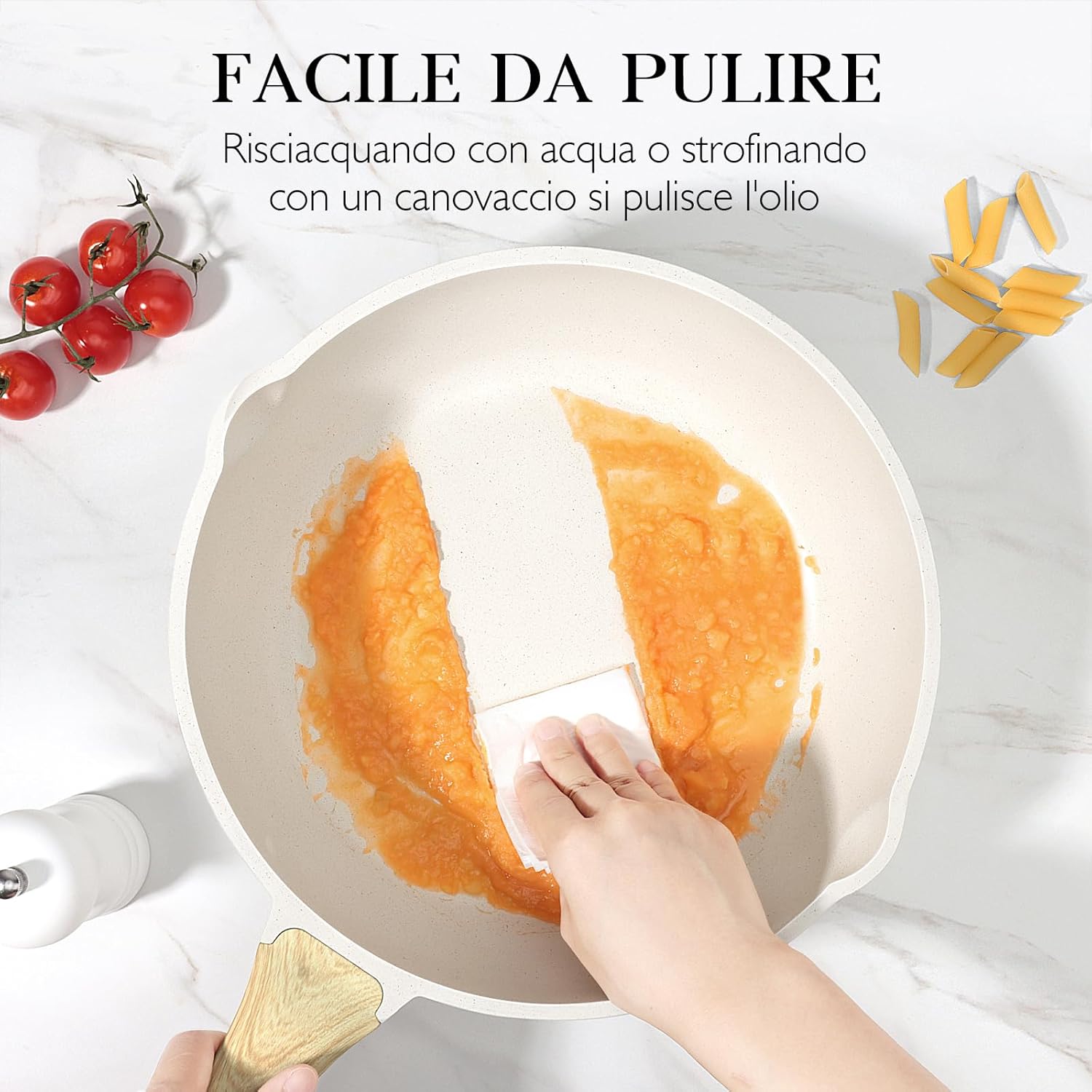 - Super antihaftbeschichtet und mühelose Reinigung: Unsere non stick pan haben eine ultraglatte und stark antihaftbeschichtete Oberfläche, die es ermöglicht, dass Eier mühelos von der Bratpfanne gleiten können, ohne dass nichts haftet. So wird Ihre