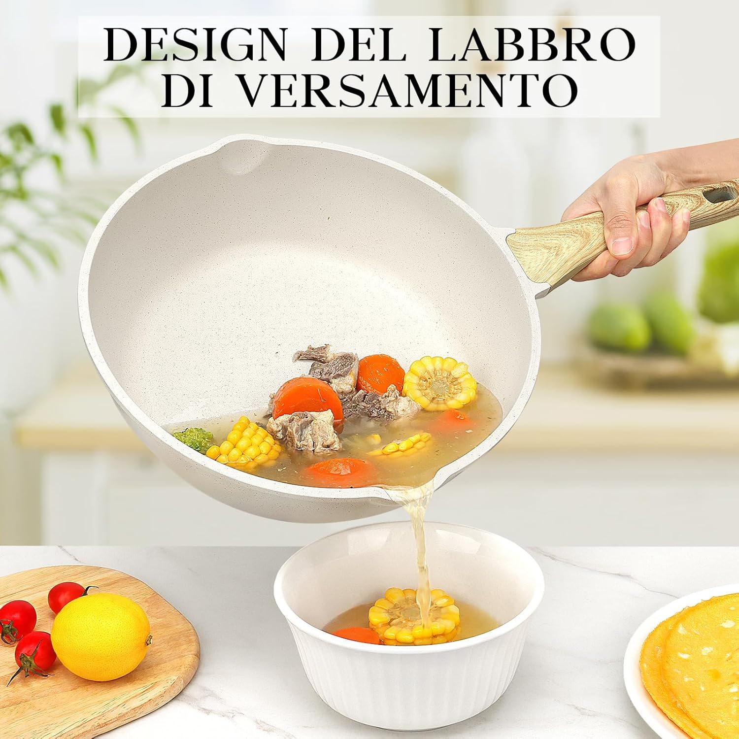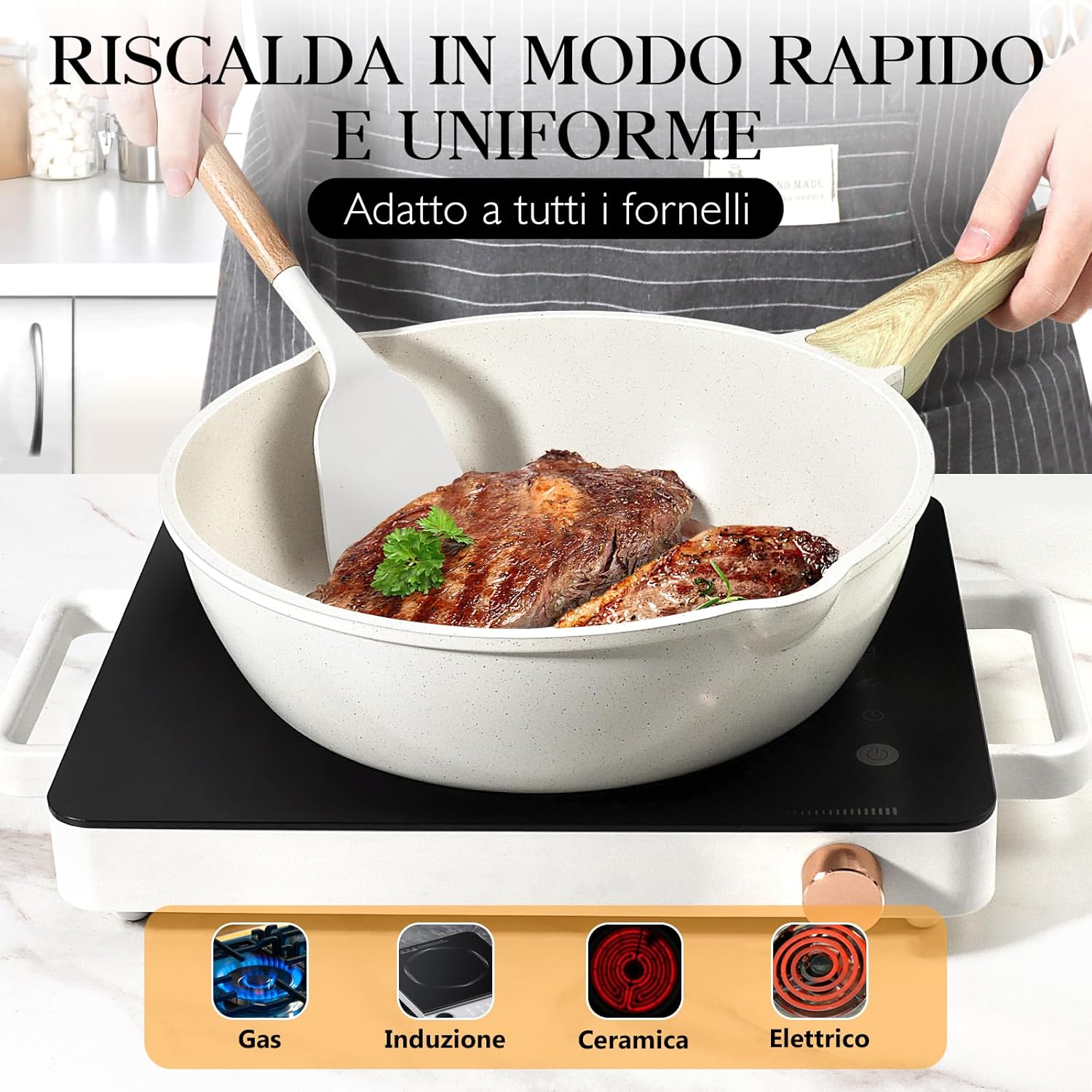 - Vielseitige Wok Induktion mit Ausgiesser Grösse: Pfanne Ø 24 cm. Unsere wokpfanne ist sowohl tief als auch gross genug, um zum Sautieren, Bräunen, Kochen, Flachbraten und Frittieren verwendet zu werden. Zwei Ausgiesser verhindern, dass Lebensmittel
