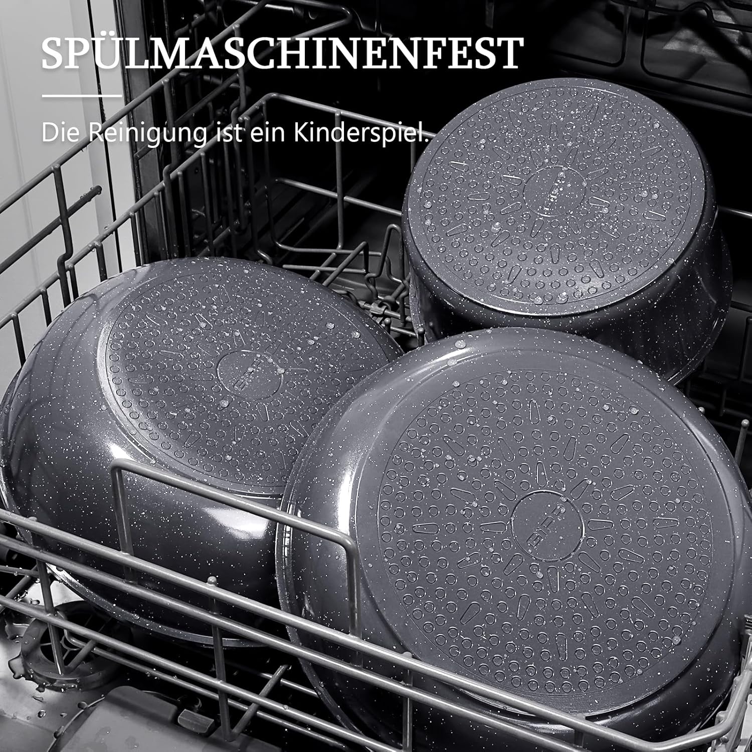 - Gesunde Granit-Beschichtung: Natürliche Antihaftbeschichtung ist ungiftig und 100% PFOA-frei, benötigt sehr wenig Öl zum Kochen, perfekt für gesundes Kochen.
