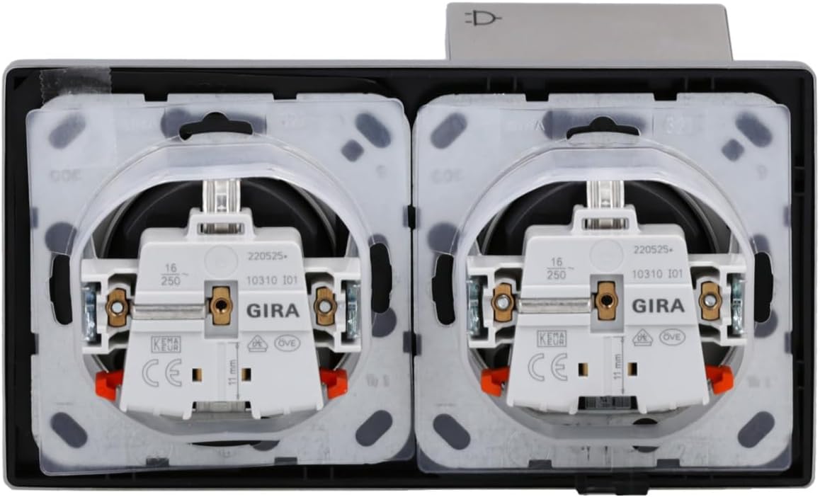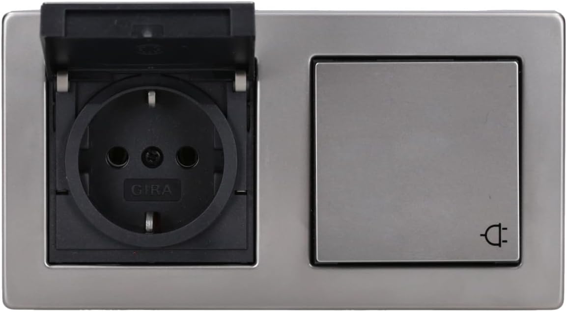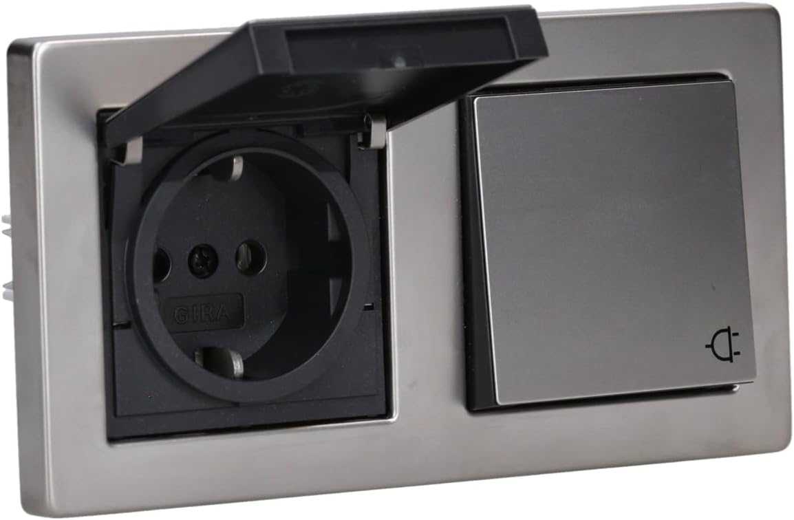 - Gira Edelstahl-Klappsteckdose (2 Stück) im 2 fach Rahmen mit IP44 Dichtung (2 Stück)