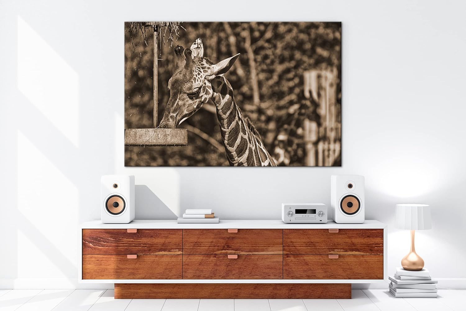 deyoli Giraffe beim Fressen Effekt: Sepia, Format: 80x60 als Leinwandbild, Motiv fertig gerahmt auf