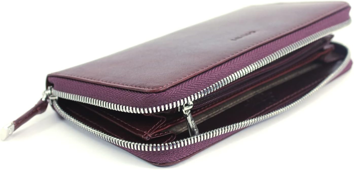 - Ausstattung: ein dreigeteiltes Hauptfach mit Reissverschluss, dreizehn Kreditkartenfächer, Fächer für Bargeld und Quittungen, ein Kleingeldfach und zwei Einsteckfächer.