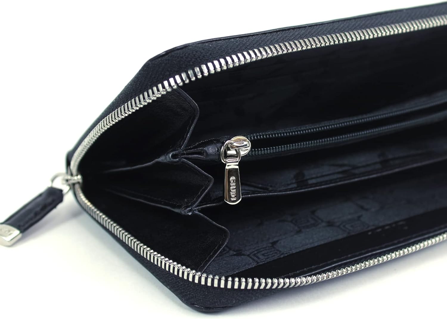GIUDI Damen Geldbörse Gross Rindsleder Schwarz (Schwarz), Schwarz