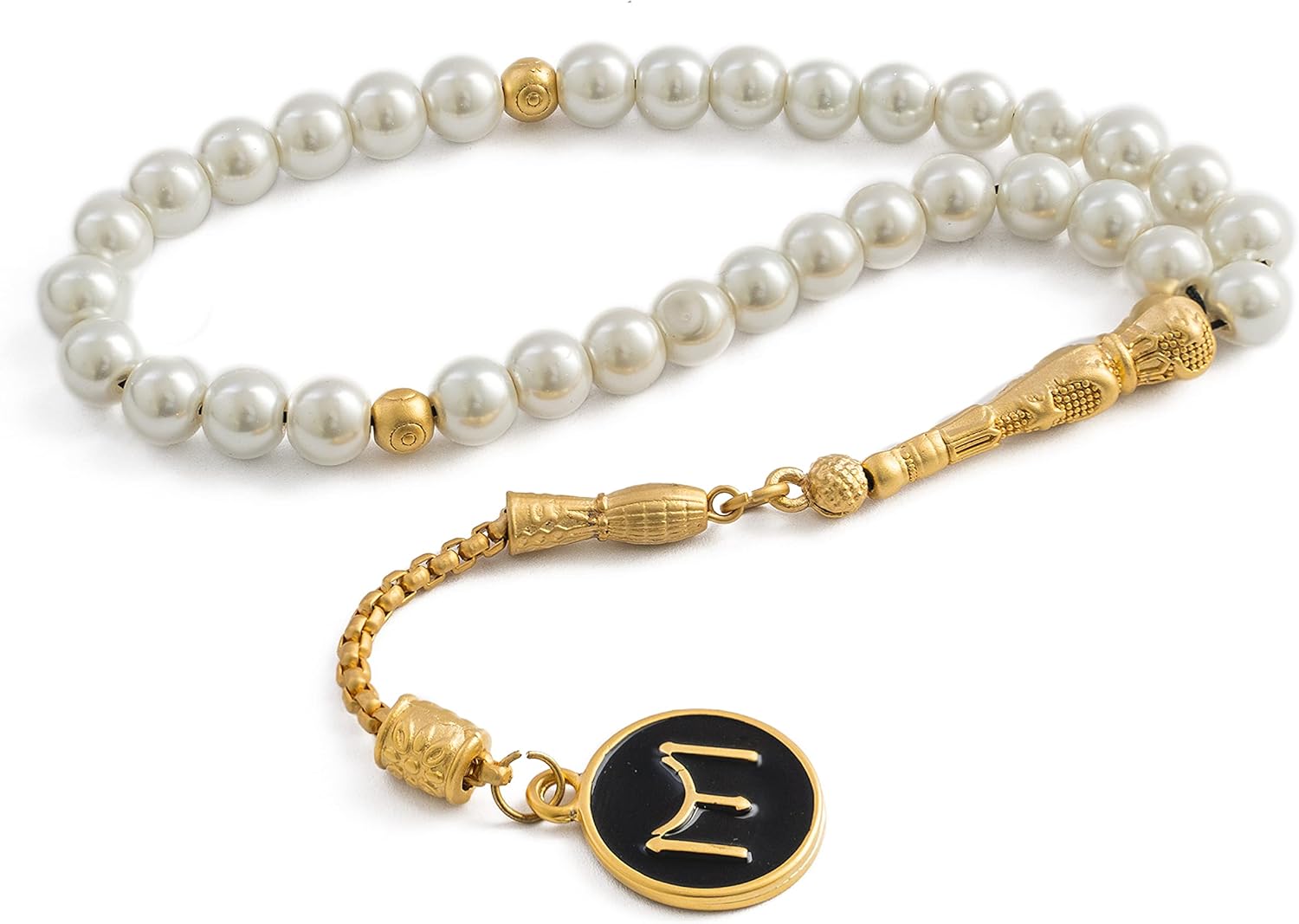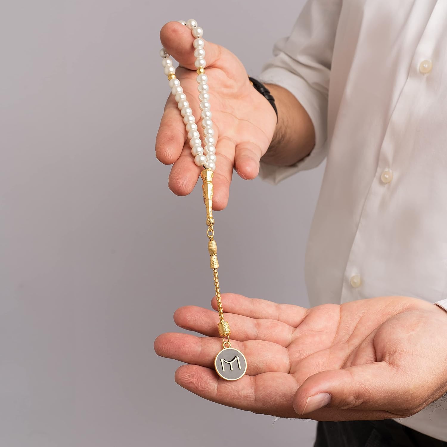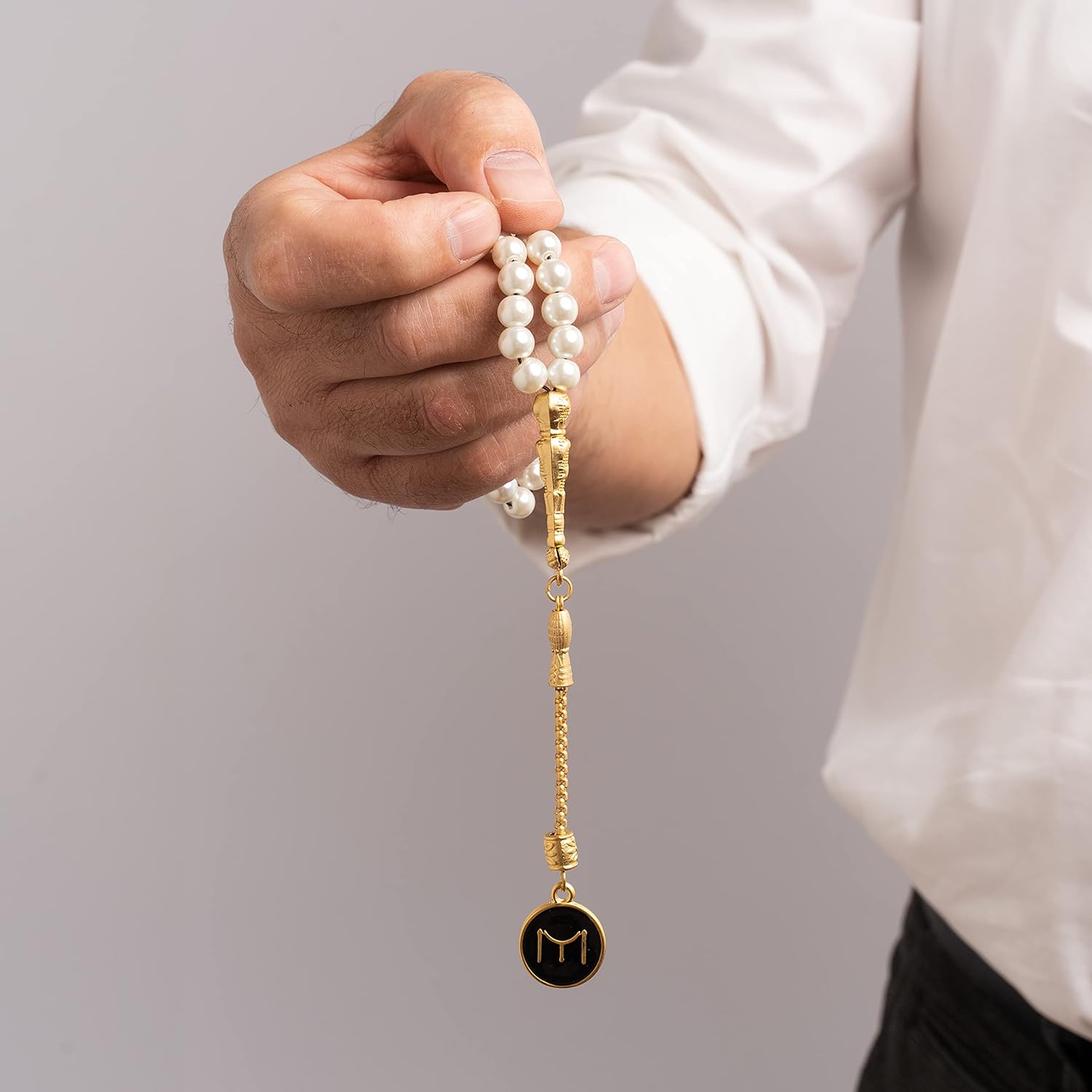 Gök-Türk Elegante Gebetskette/Tesbih mit Schatulle/Tesbih Box - mit goldfarbenem Anhänger 'IYI' Kayi