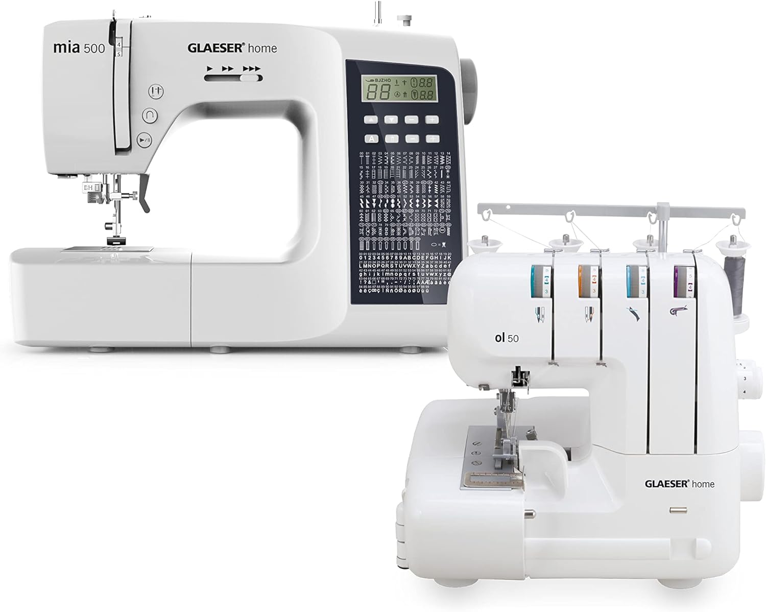 - GLAESERhome Profi-Bundel Enthält eine ol50 Overlockmaschine, mia500 Digitale Nähmaschine mit passenden Anschiebetisch