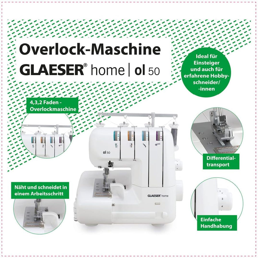 - GLAESERhome ol50 Overlock Nähmaschine | Näht und schneidet in einem Arbeitsschritt was unheimlich viel Zeit spart. So verwirklichen Sie mehr Projekte in weniger Zeit.