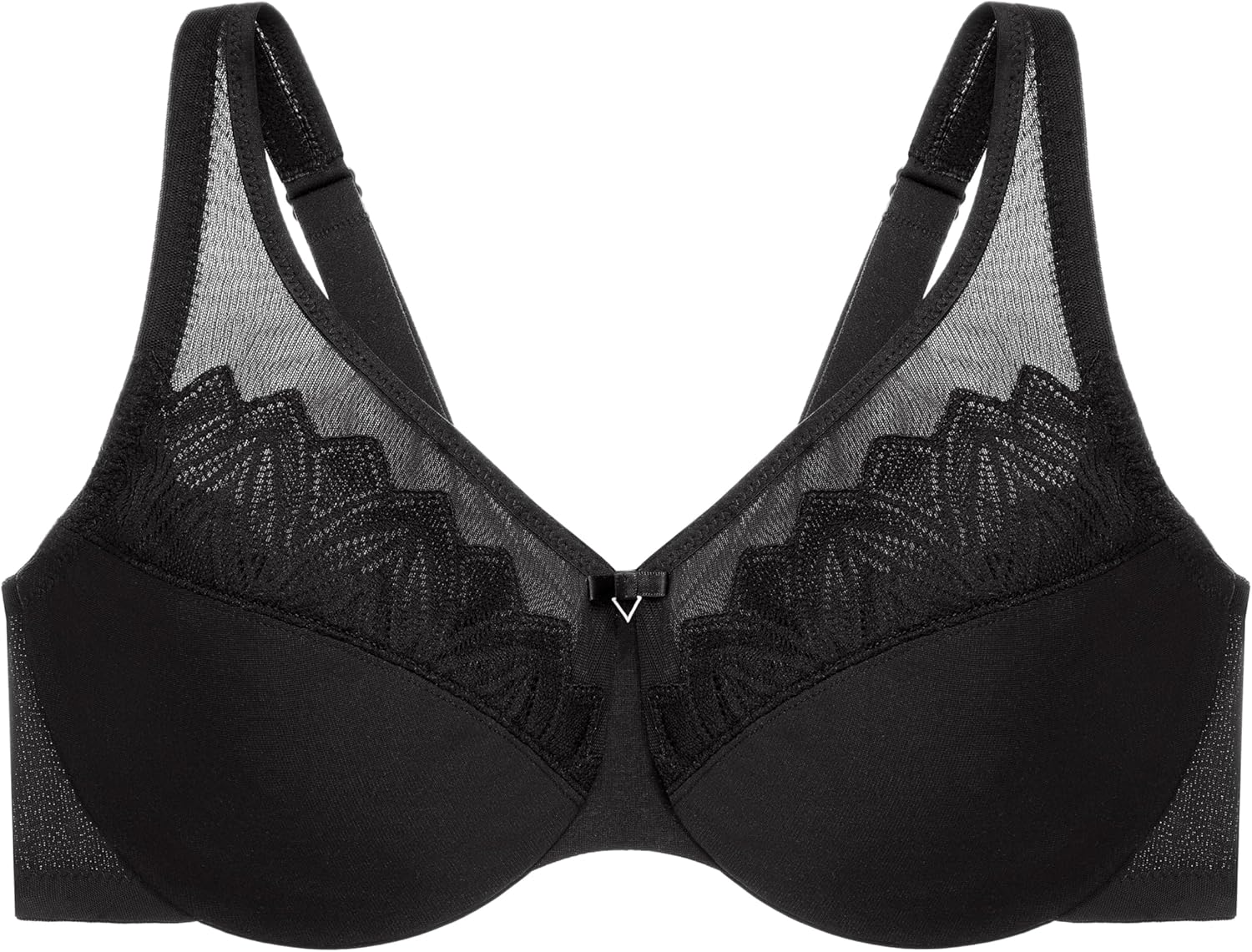 PRODUKTBESCHREIBUNGEN Der so wichtige stützende Bügel verbindet sich hier mit der vollumschliessenden Minimizer-Funktion, die Sie sich wünschen. Mit seinem feinen Mesh-Material und den Minimizer-Cups in Spitze verringert dieser vollumschliessende BH das Brustvolumen um 2,5 cm. Seine schöne Passform macht ihn unter jedem Oberteil zum diskreten Begleiter.