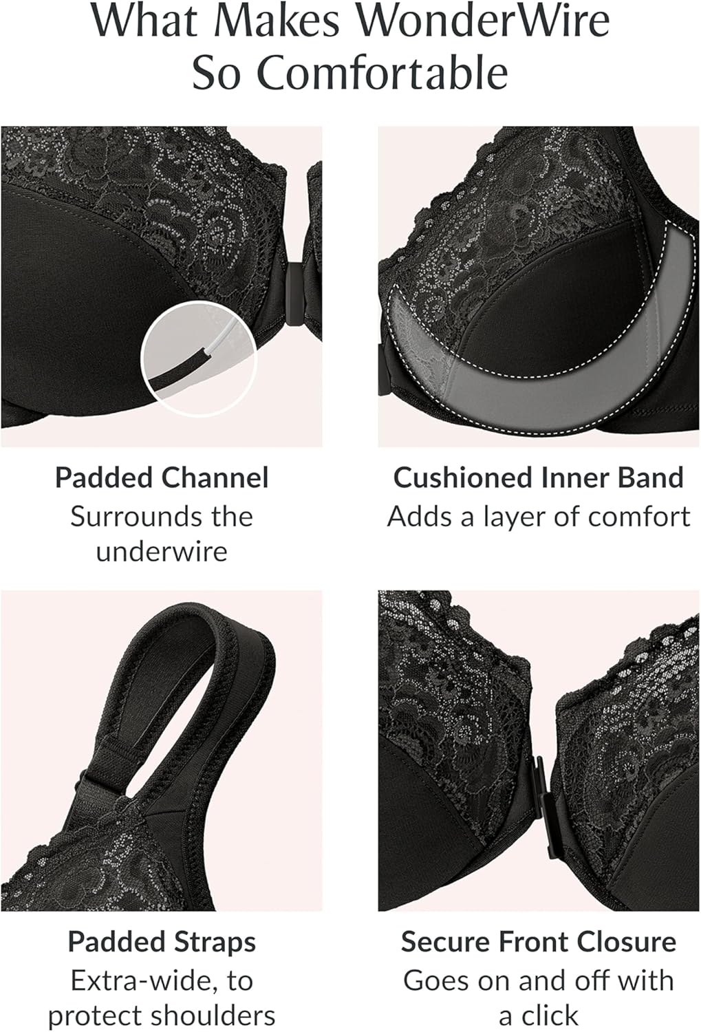 Glamorise Damen Wonderwire-Vorderverschluss BH 115C Schwarz, 115C Schwarz