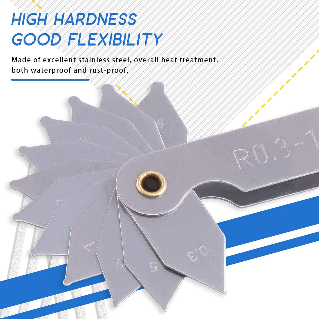 - ★【Hohe Qualität】: Alle Radiusmessgeräte sind aus hochwertigem Stahl, wärmebehandelt mit Chrom-Finish, hohe Festigkeit, gute Belastbarkeit, elegantes Aussehen. Oberfläche glatt poliert, Rostschutzöl auftragen, um Rost und Korrosion zu